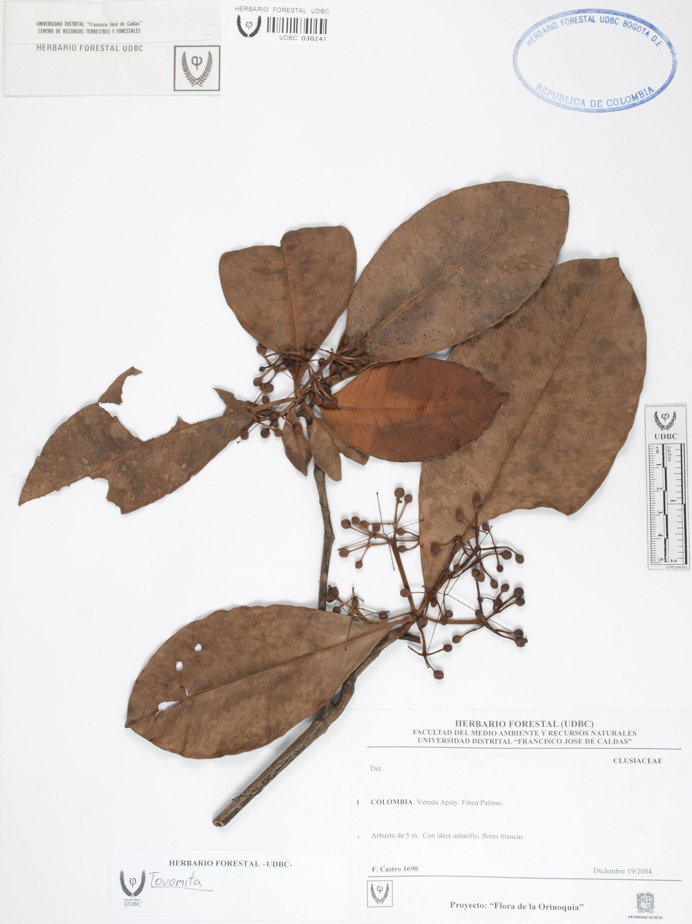 Fotografía del ejemplar Castro, F. 1690, determinado como Tovomita sp.
