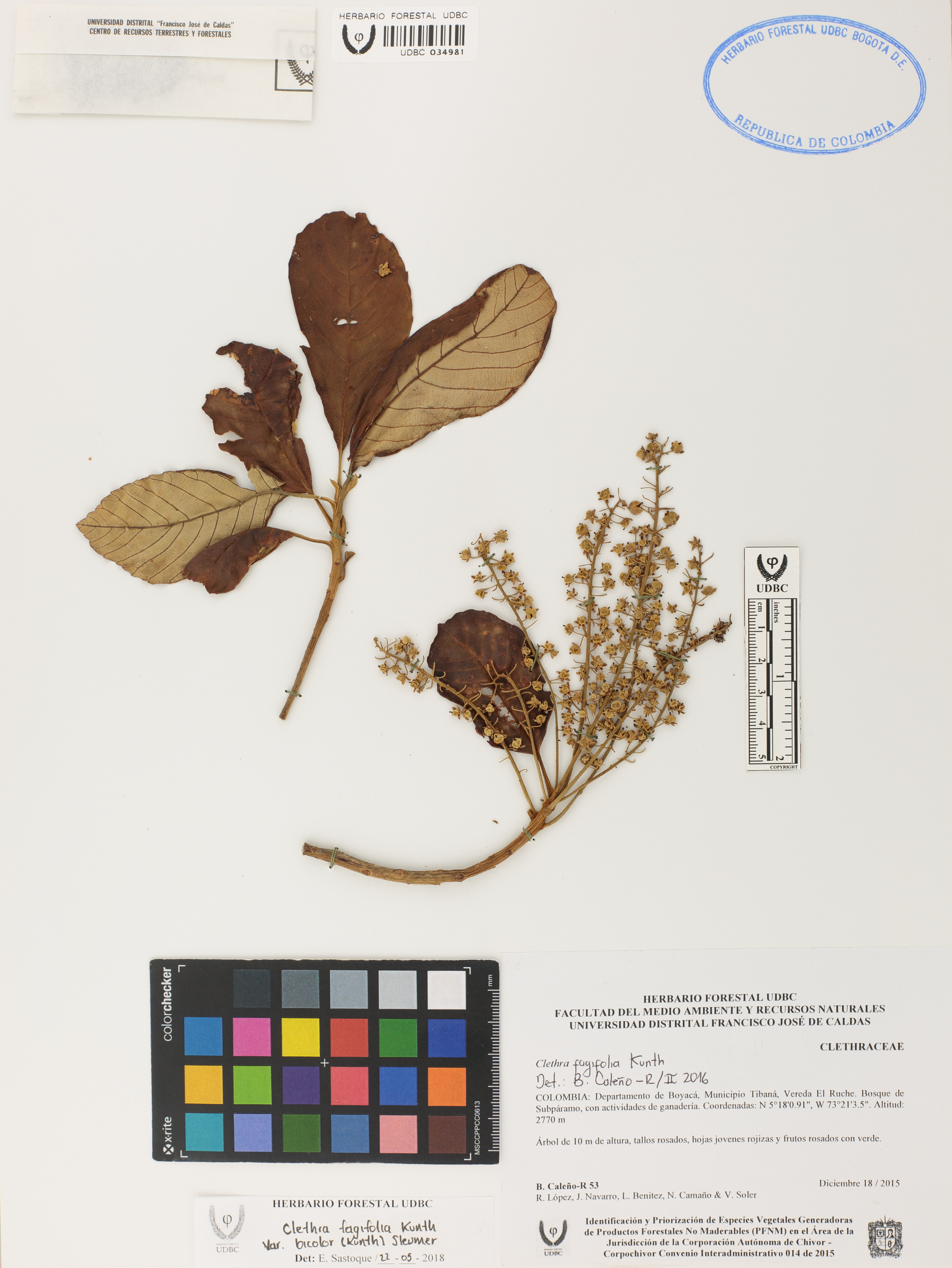 | dc.description | Fotografía del ejemplar Caleño-R., B. 53, determinado como Clethra fagifolia var. bicolor en el año 2018 | |