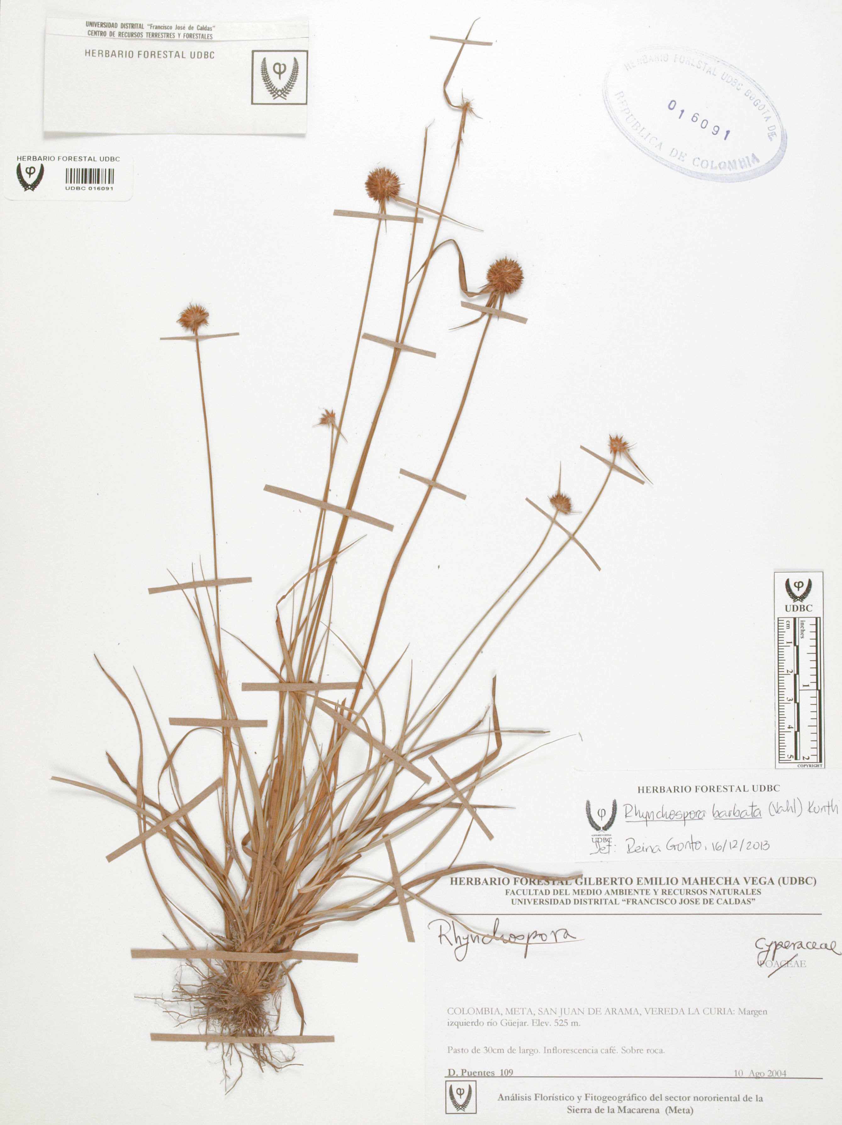 Fotografía del ejemplar Puentes, D. 109, determinado como Rhynchospora barbata en el año 2013