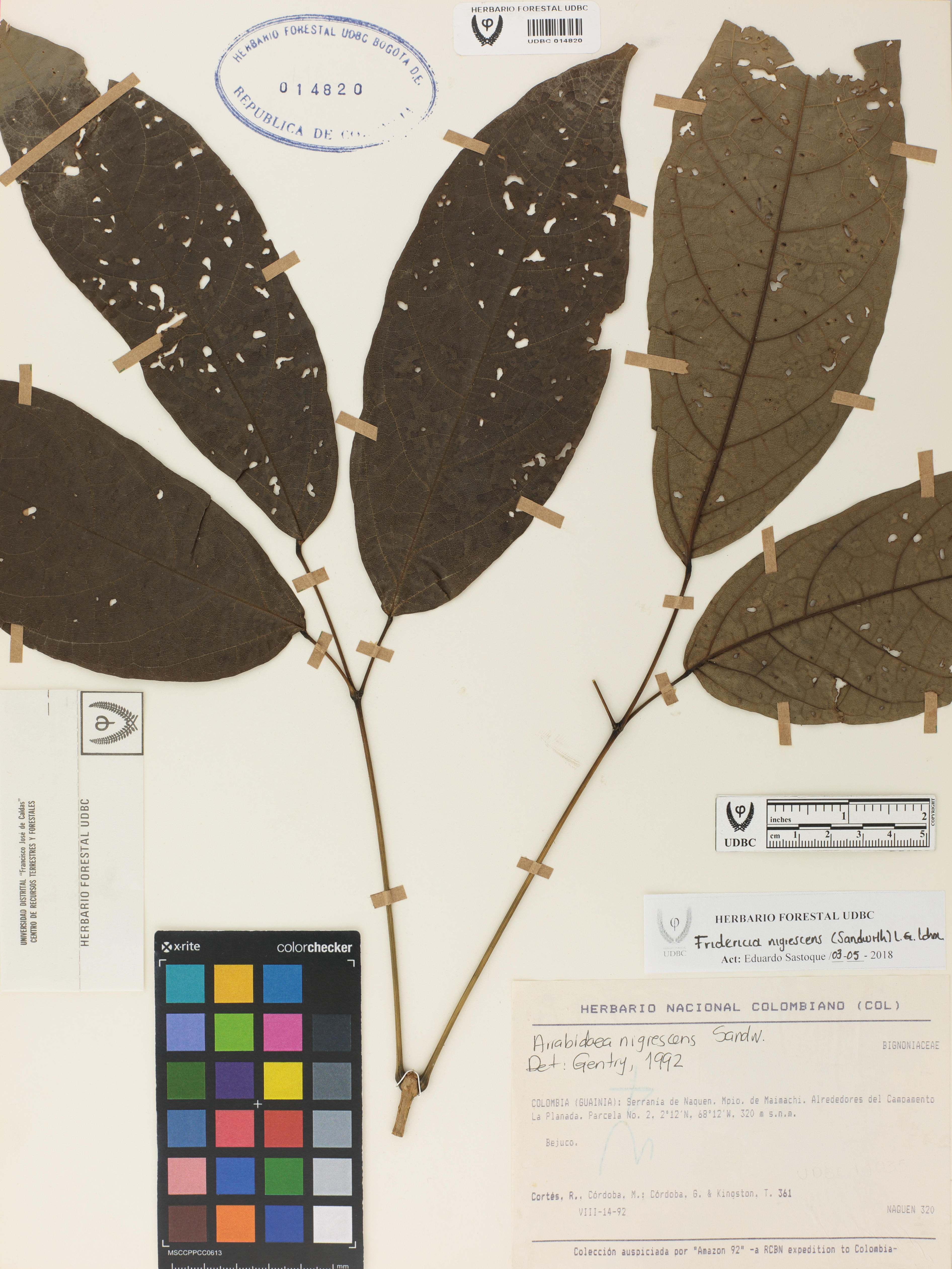 Fotografía del ejemplar Cortés, R. 361, determinado como Fridericia nigrescens en el año 2018