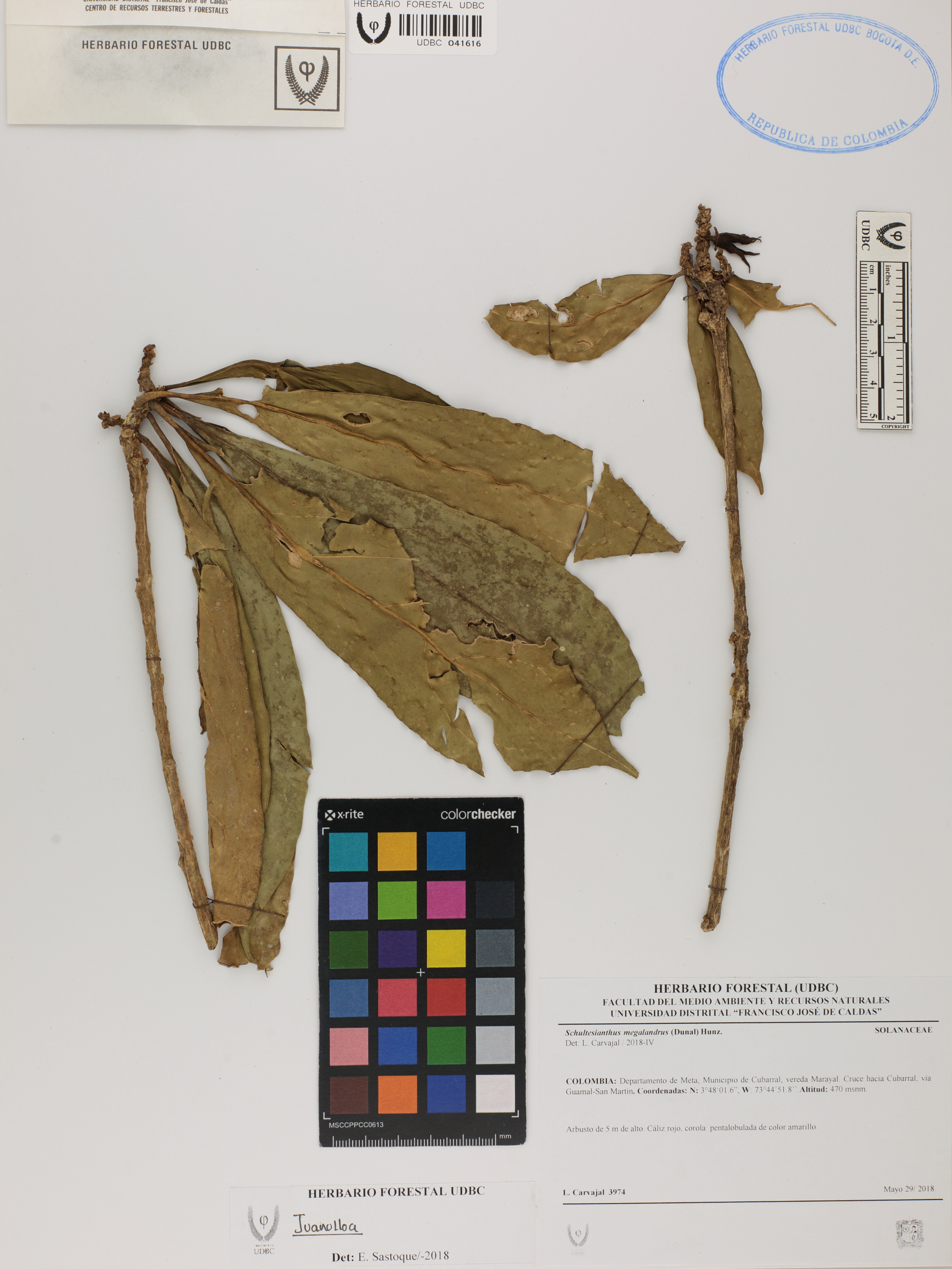 Fotografía del ejemplar Carvajal, L. 3974, determinado como Juanulloa sp. en el año 2018