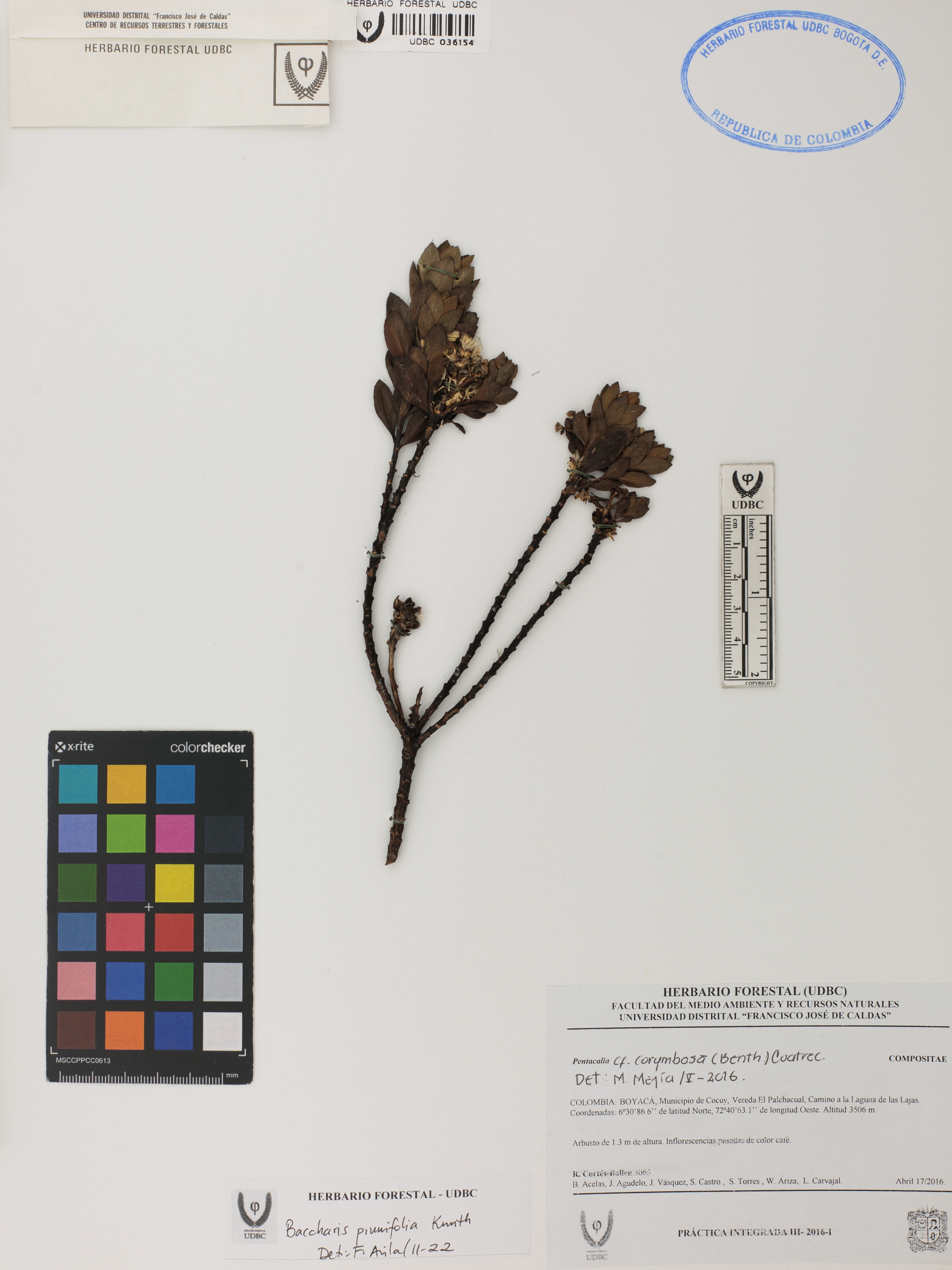 Fotografía del ejemplar Cortés-B., R. 3065, determinado como Baccharis prunifolia en el año 2022