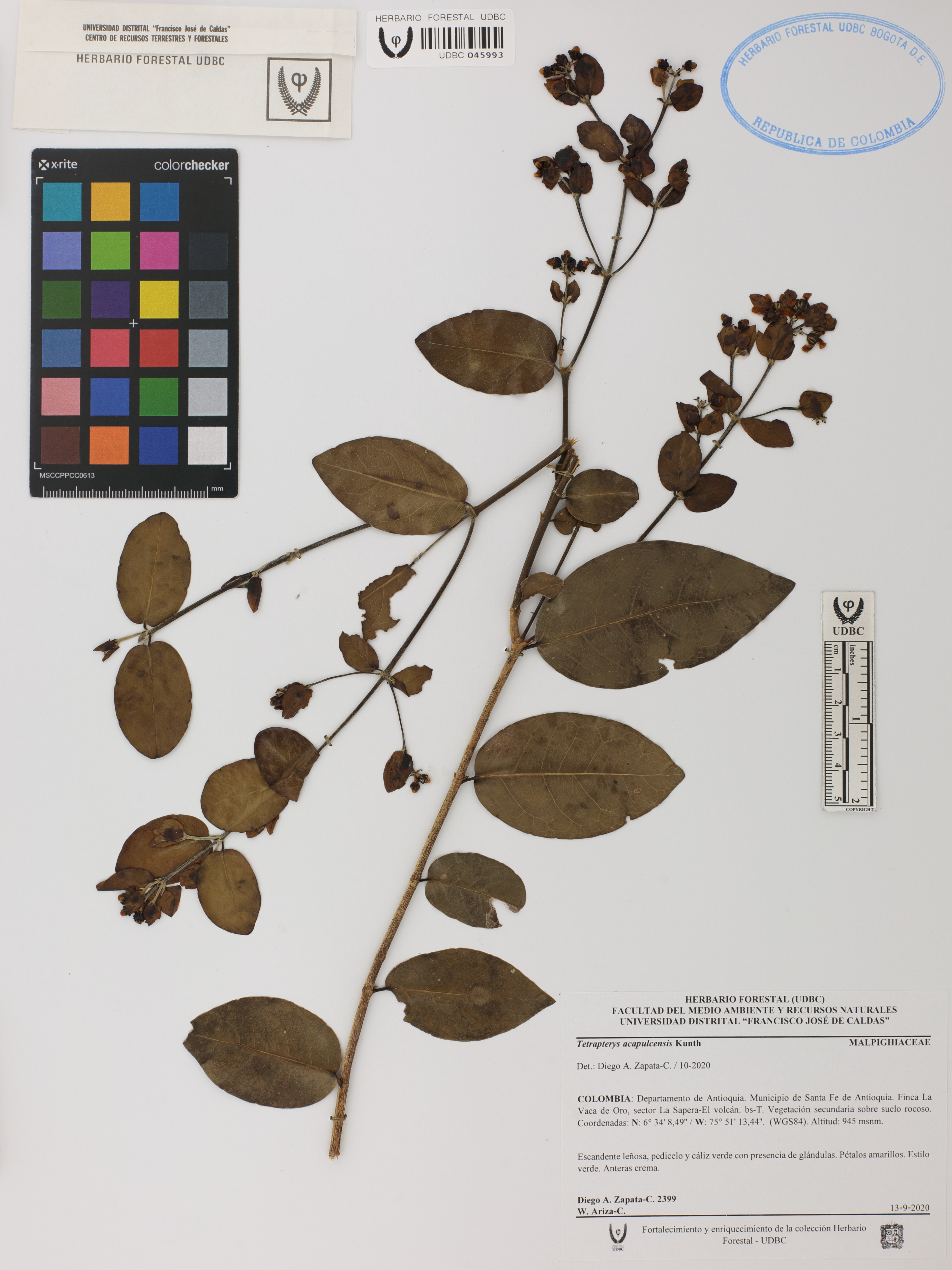 | dc.description | Fotografía del ejemplar Zapata-C., D. 2399, determinado como Tetrapterys acapulcensis en el año 2020 | |
