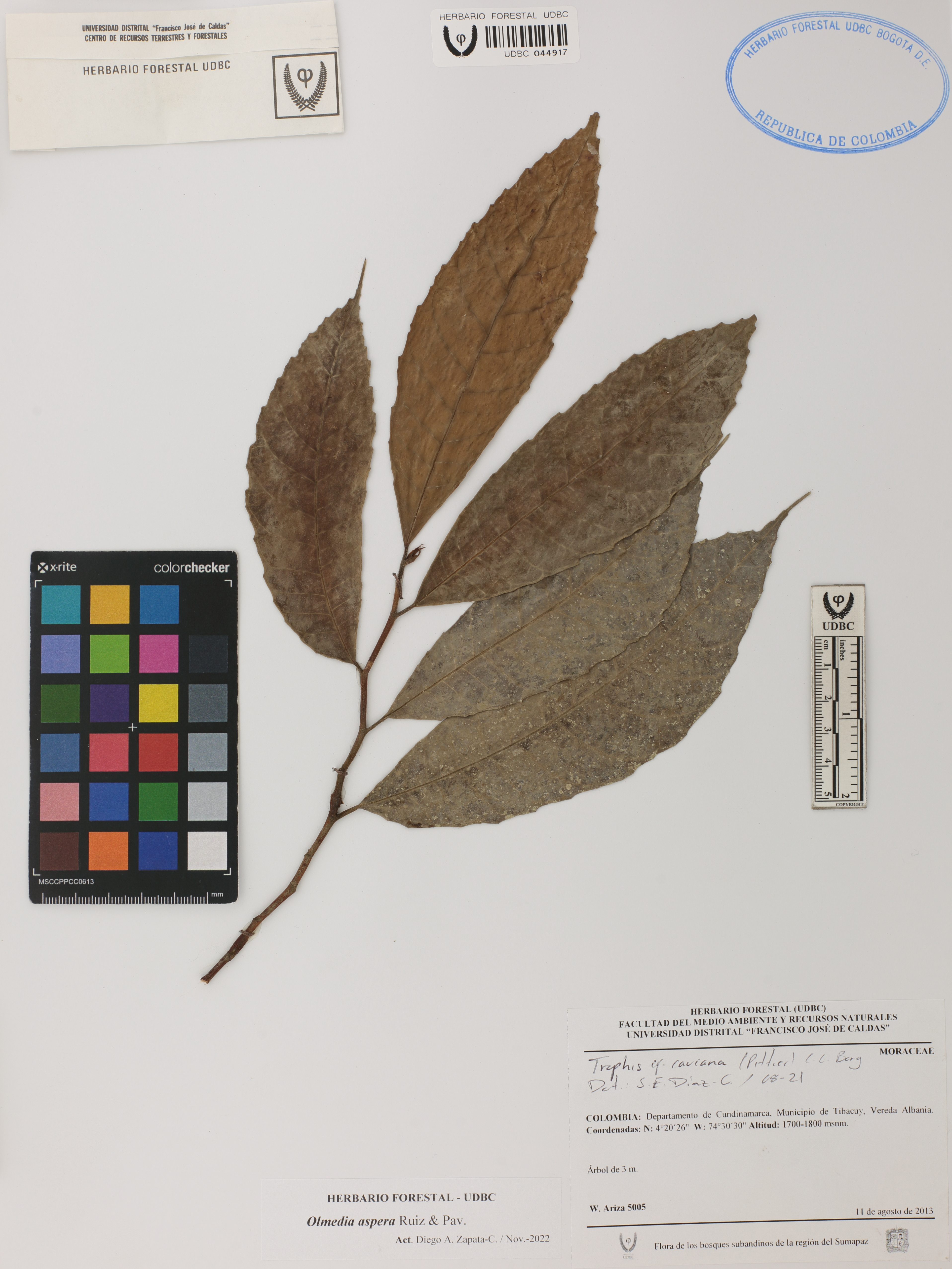 Fotografía del ejemplar Ariza-Cortés, W. 5005, determinado como Olmedia aspera en el año 2021