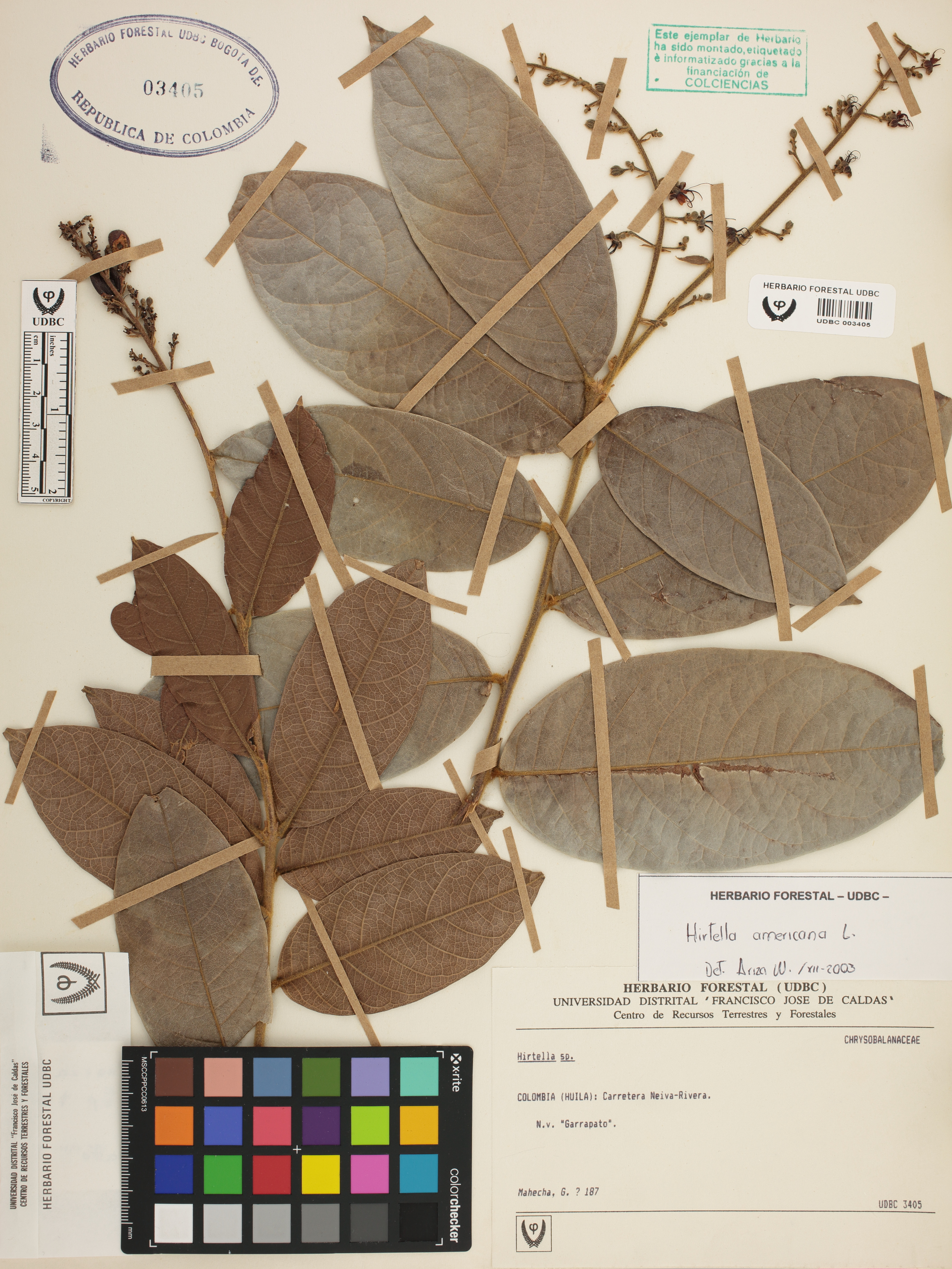Fotografía del ejemplar Mahecha, G. 187, determinado como Hirtella americana en el año 2003