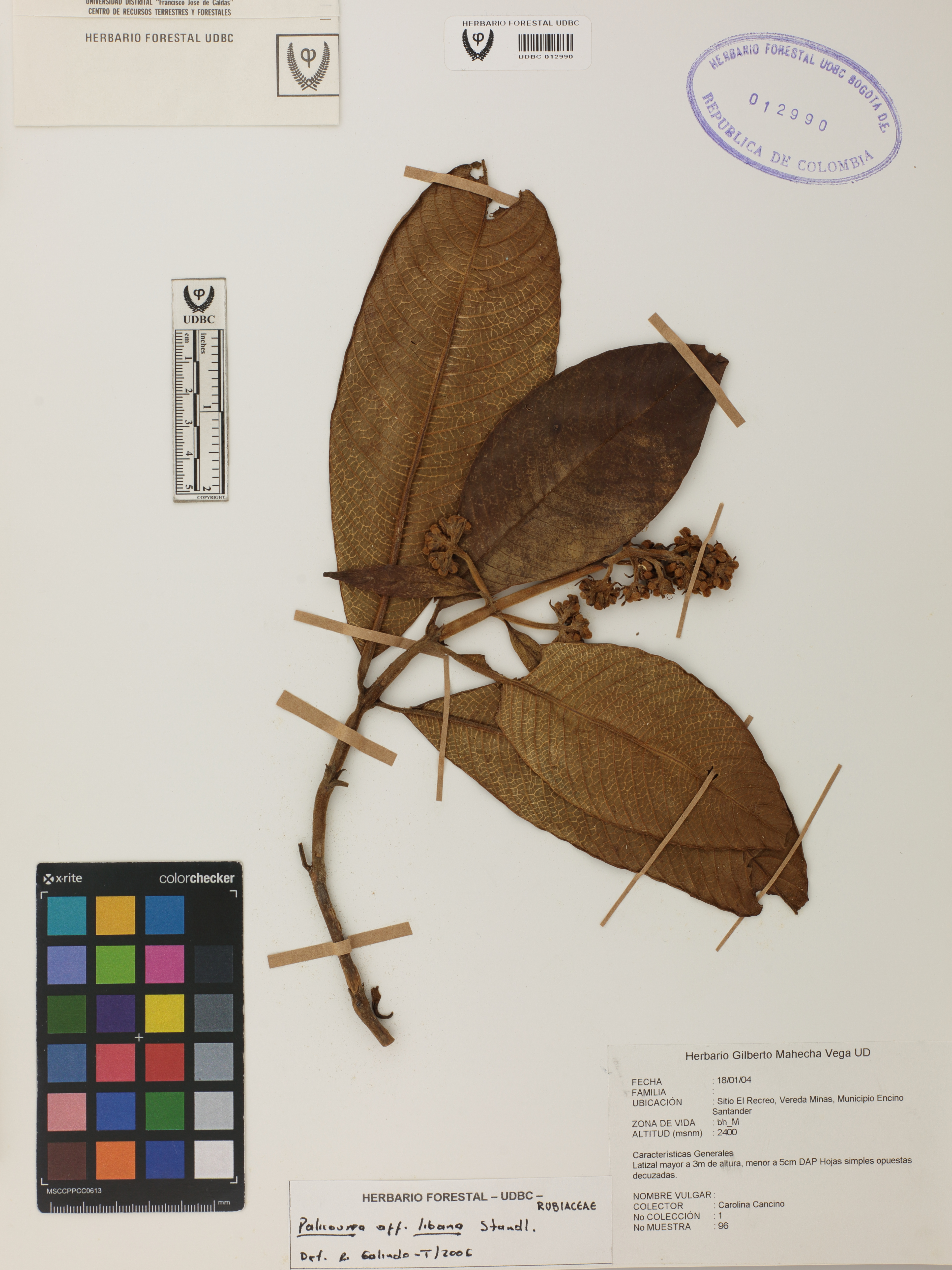 Fotografía del ejemplar Cancino, C., determinado como Palicourea libana en el año 2006