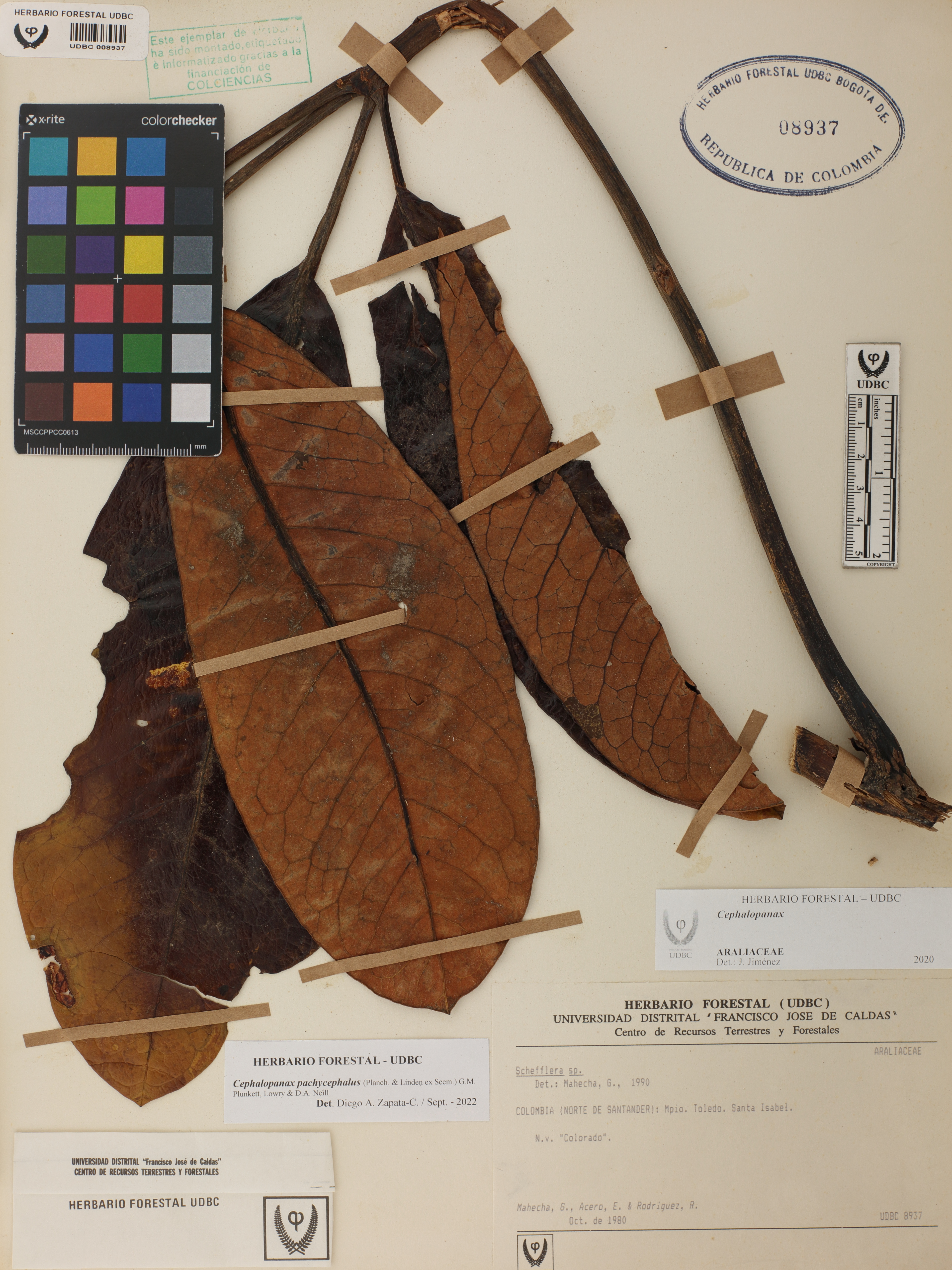 Fotografía del ejemplar Mahecha, G., determinado como Cephalopanax pachycephalus en el año 2022