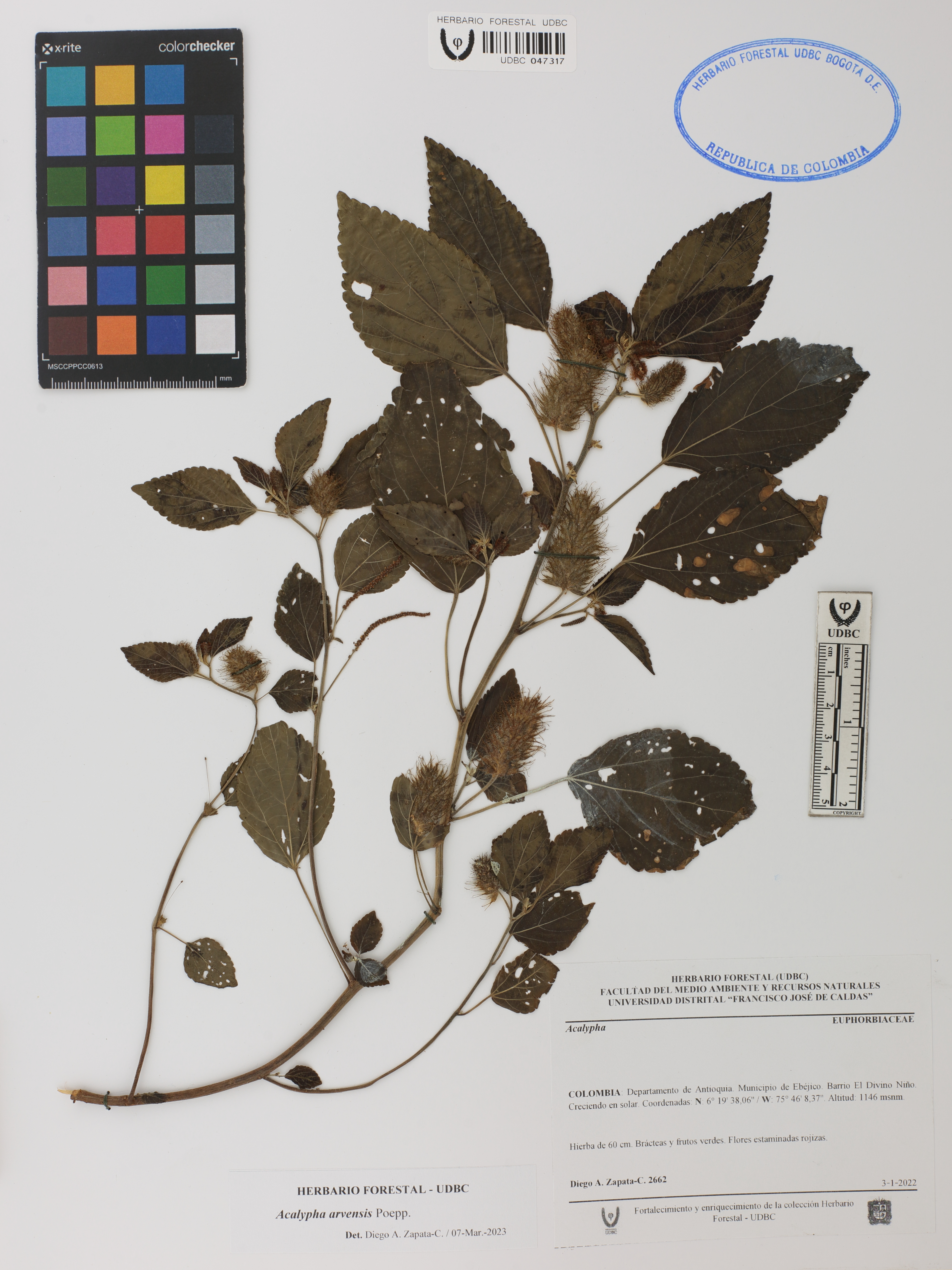 Fotografía del ejemplar Zapata-C., D. 2662, determinado como Acalypha arvensis en el año 2023