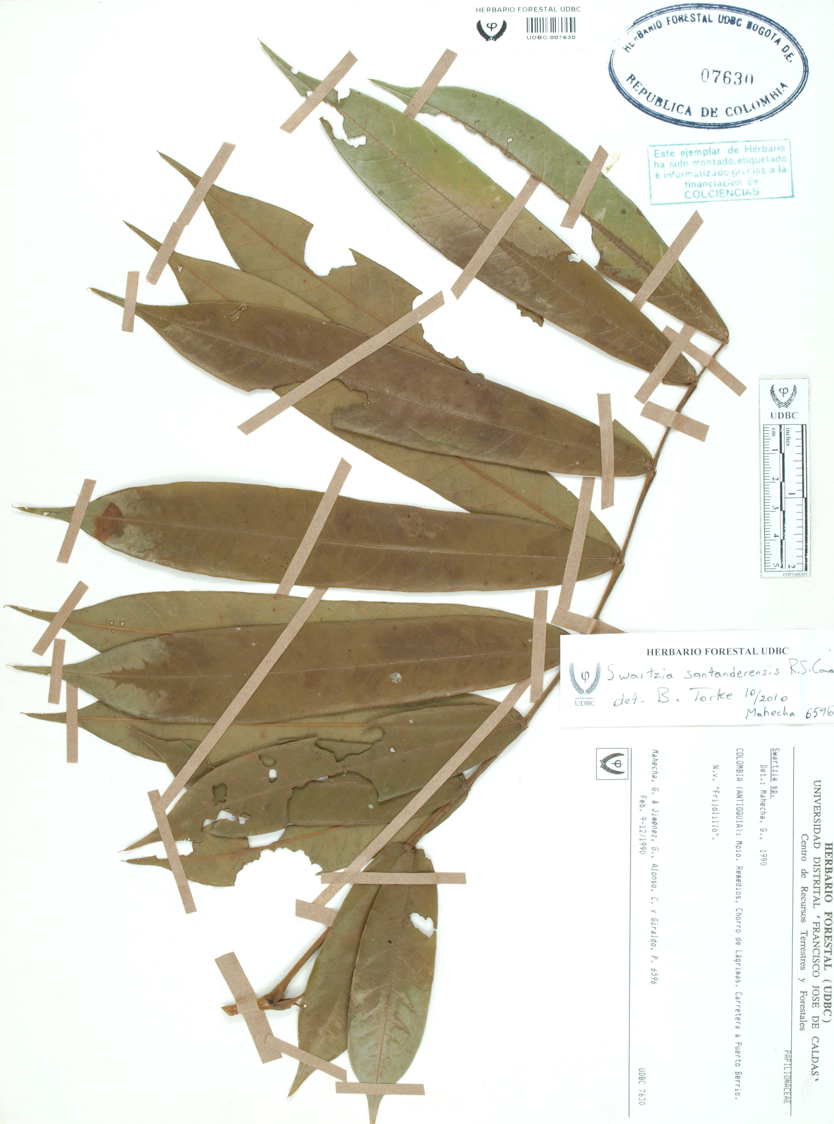 Fotografía del ejemplar Mahecha, G. 6596, determinado como Swartzia santanderensis en el año 2010