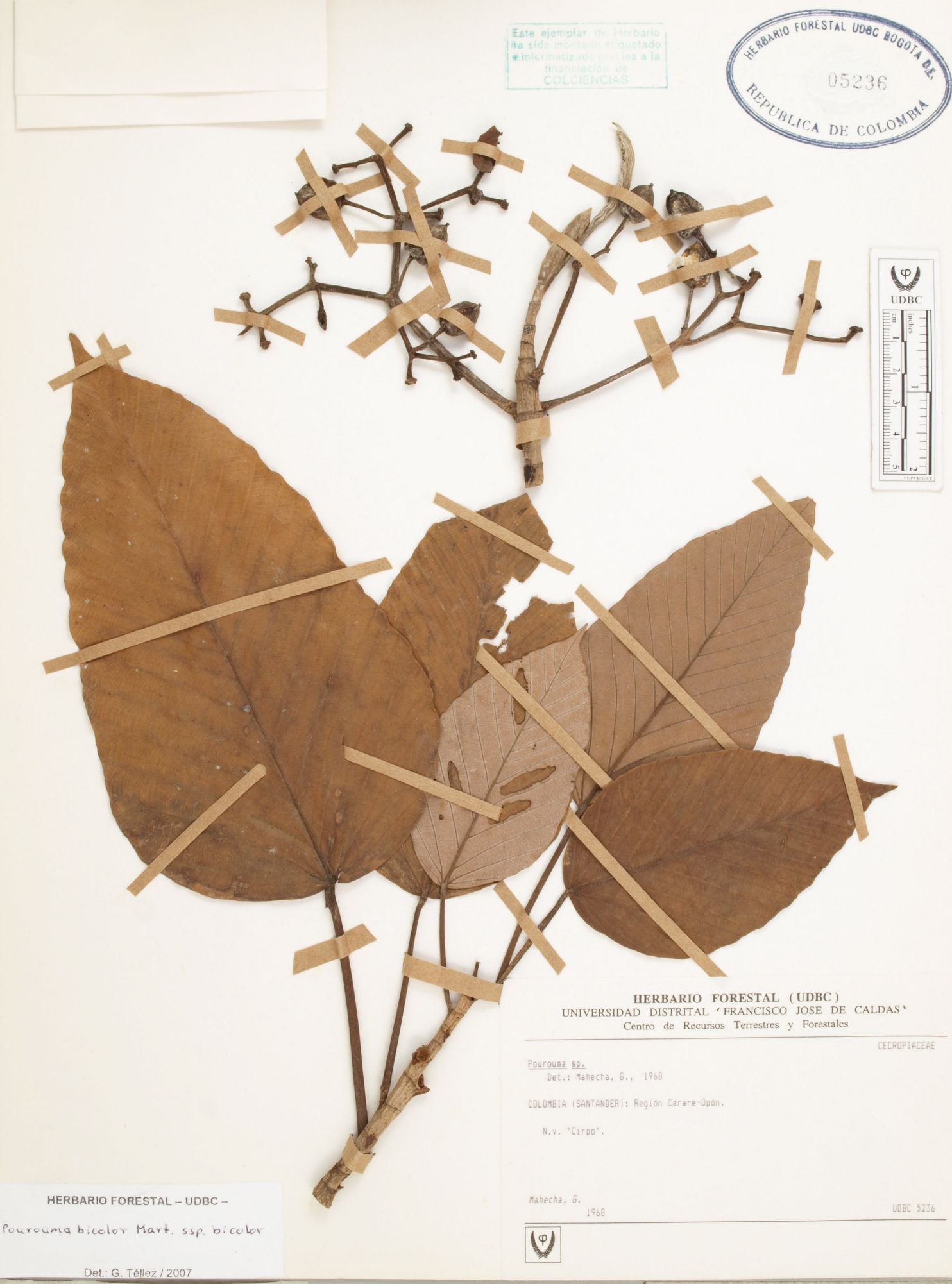 | dc.description | Fotografía del ejemplar Mahecha, G., determinado como Pourouma bicolor subsp. bicolor en el año 2007 | |
