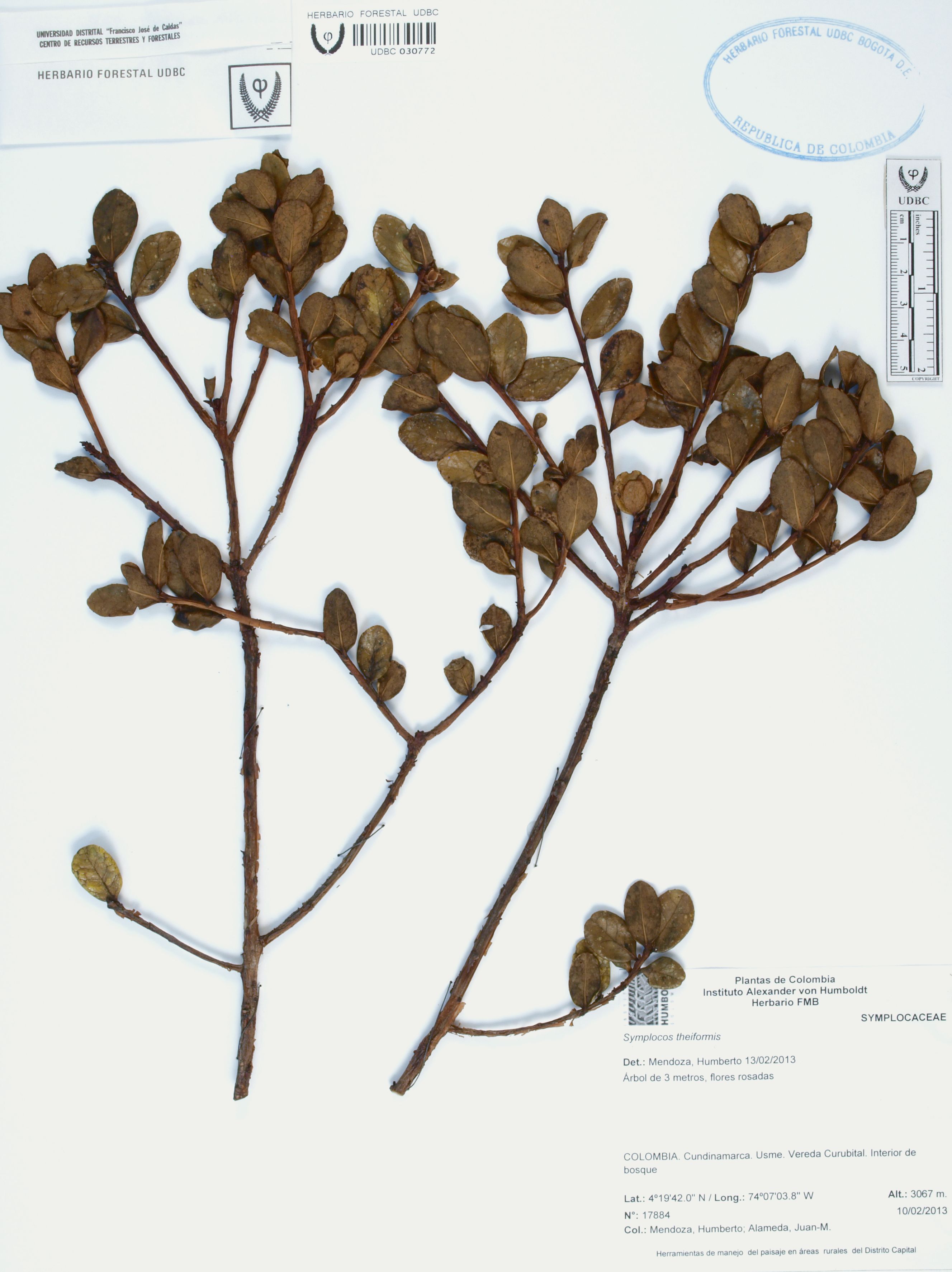 Fotografía del ejemplar Mendoza, H. 17884, determinado como Symplocos theiformis en el año 2013