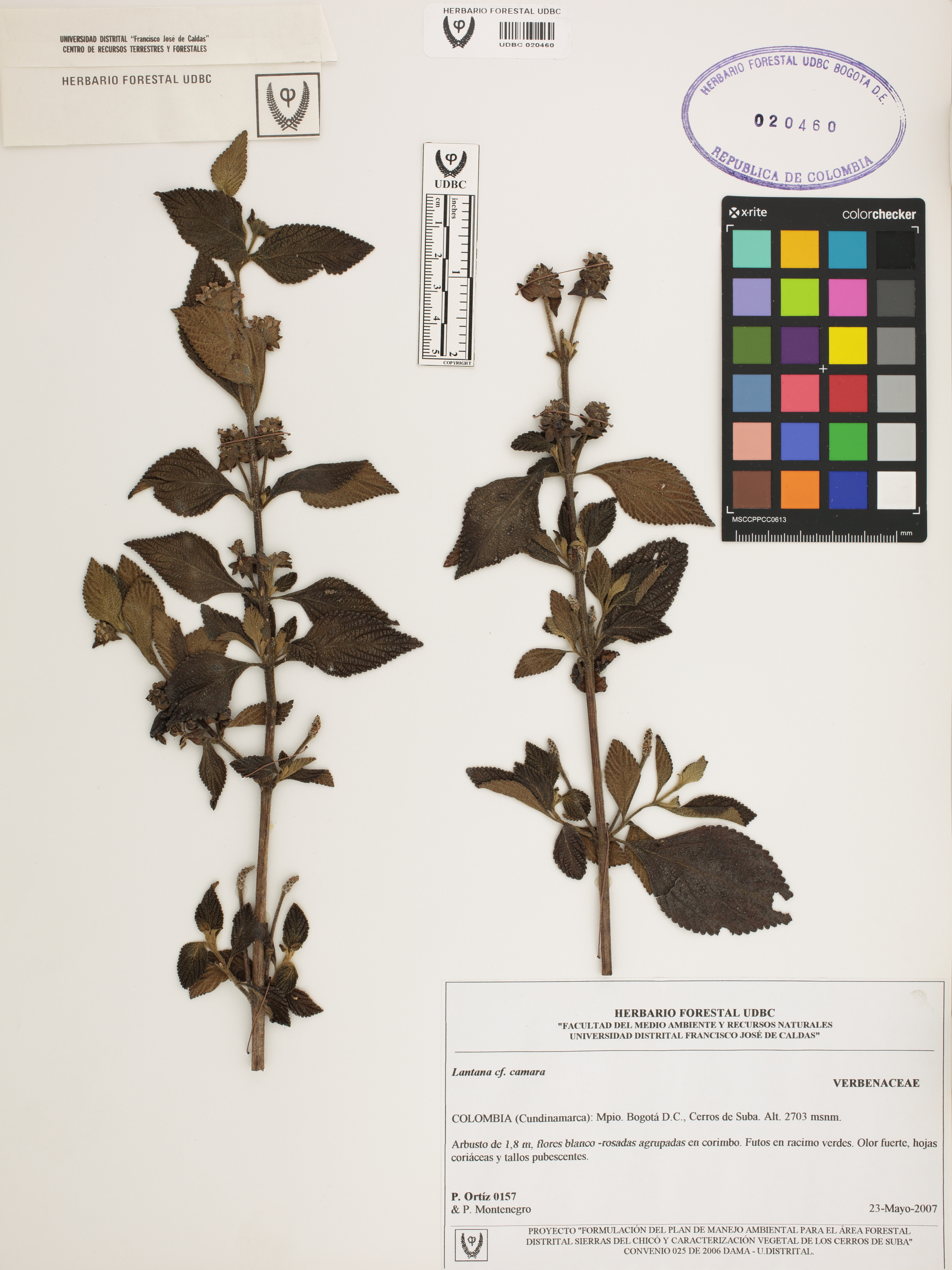 Fotografía del ejemplar Ortiz, P. 157, determinado como Lantana camara