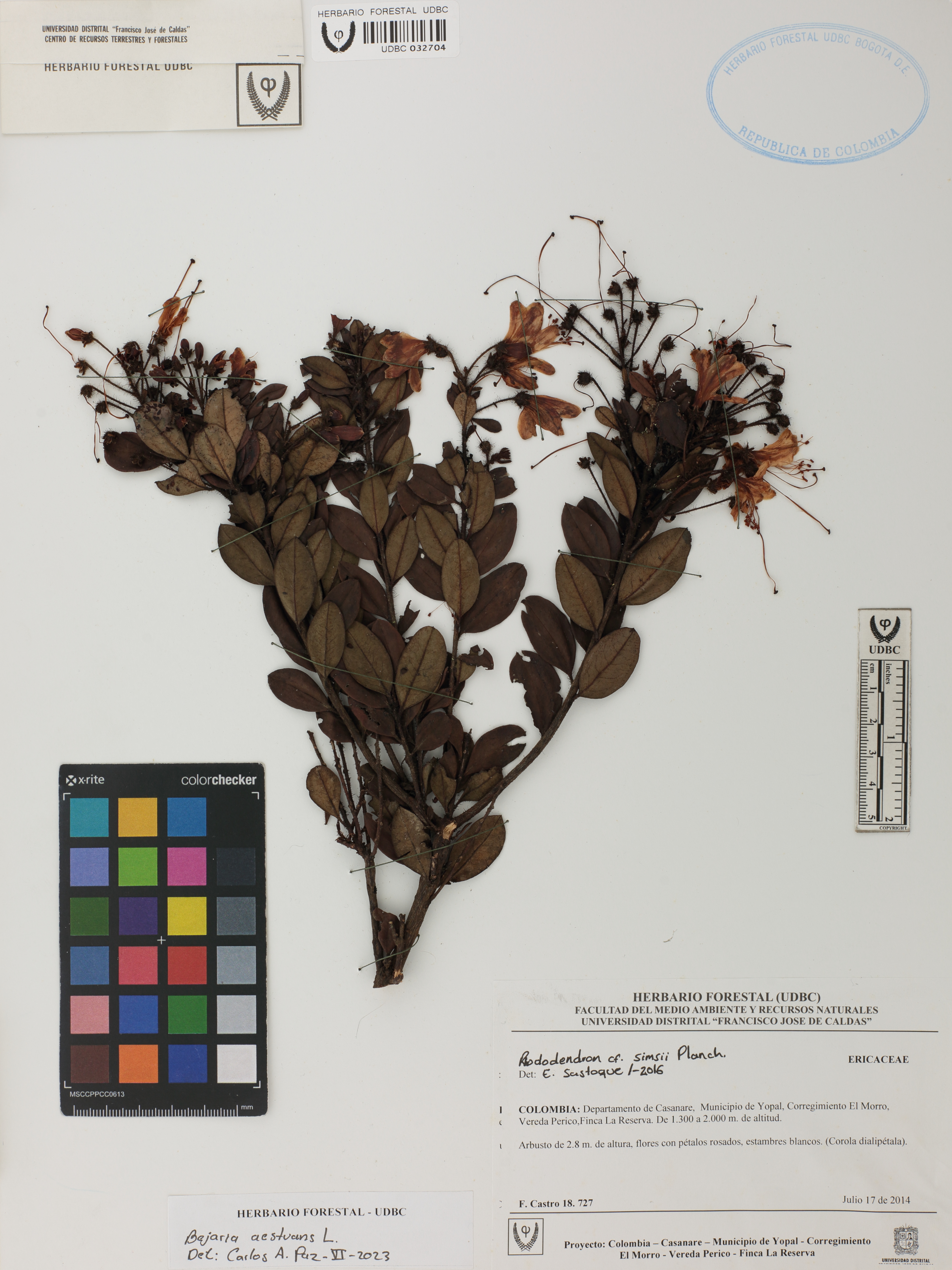| dc.description | Fotografía del ejemplar Castro, F. 18727, determinado como Bejaria aestuans en el año 2023 | |