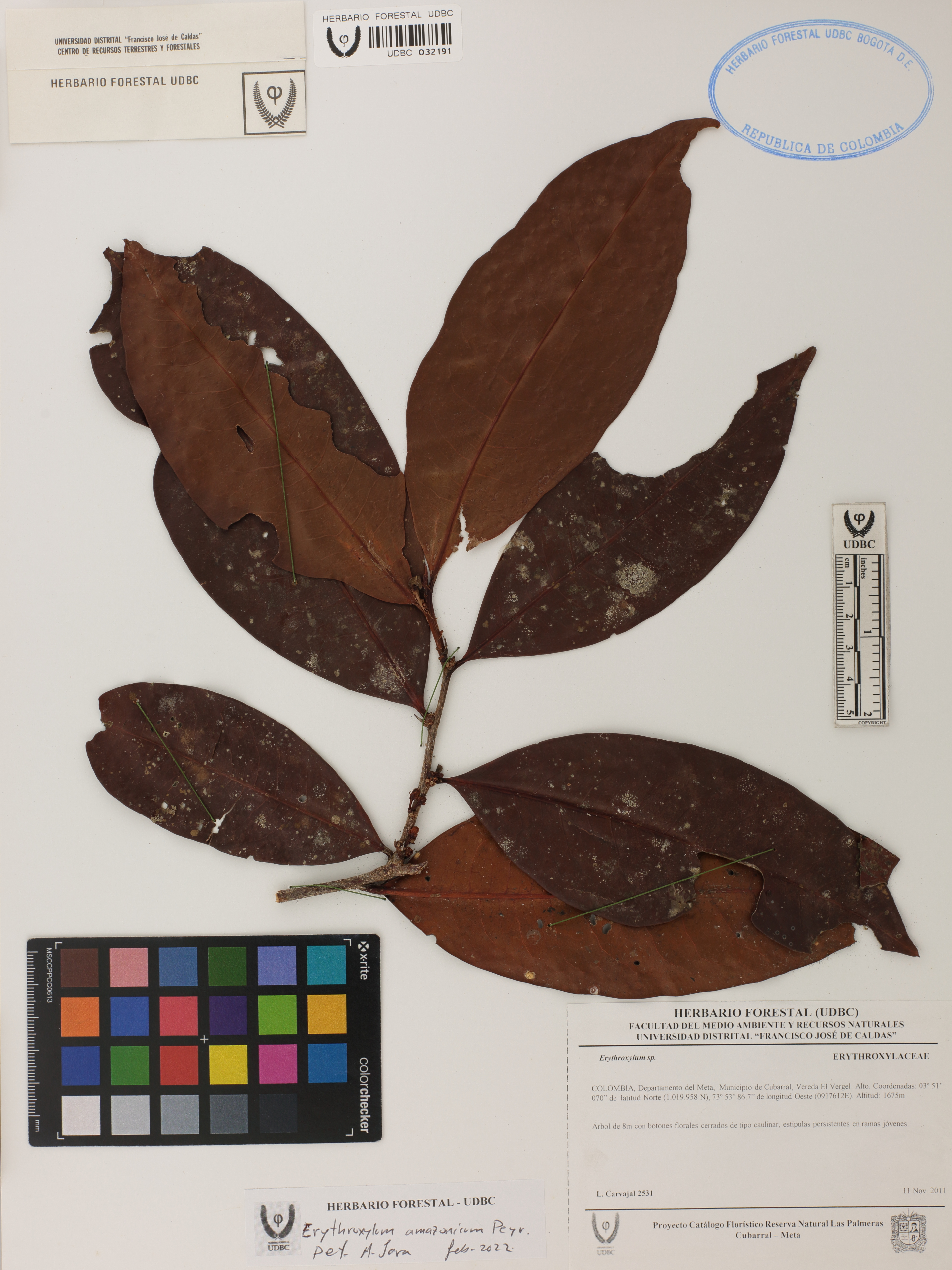 | dc.description | Fotografía del ejemplar Carvajal, L. 2531, determinado como Erythroxylum amazonicum en el año 2022 | |