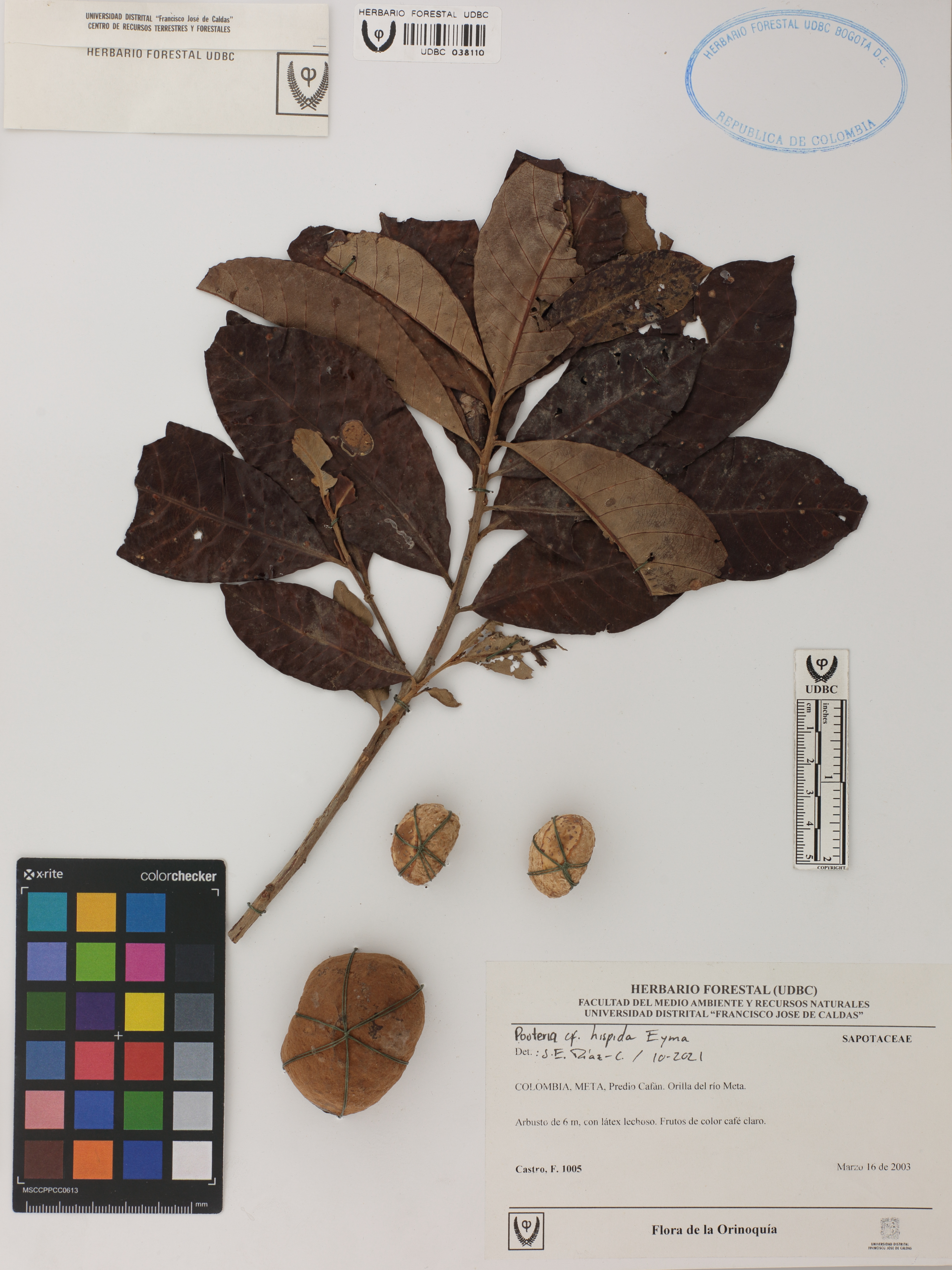 | dc.description | Fotografía del ejemplar Castro, F. 1005, determinado como Pouteria hispida en el año 2021 | |