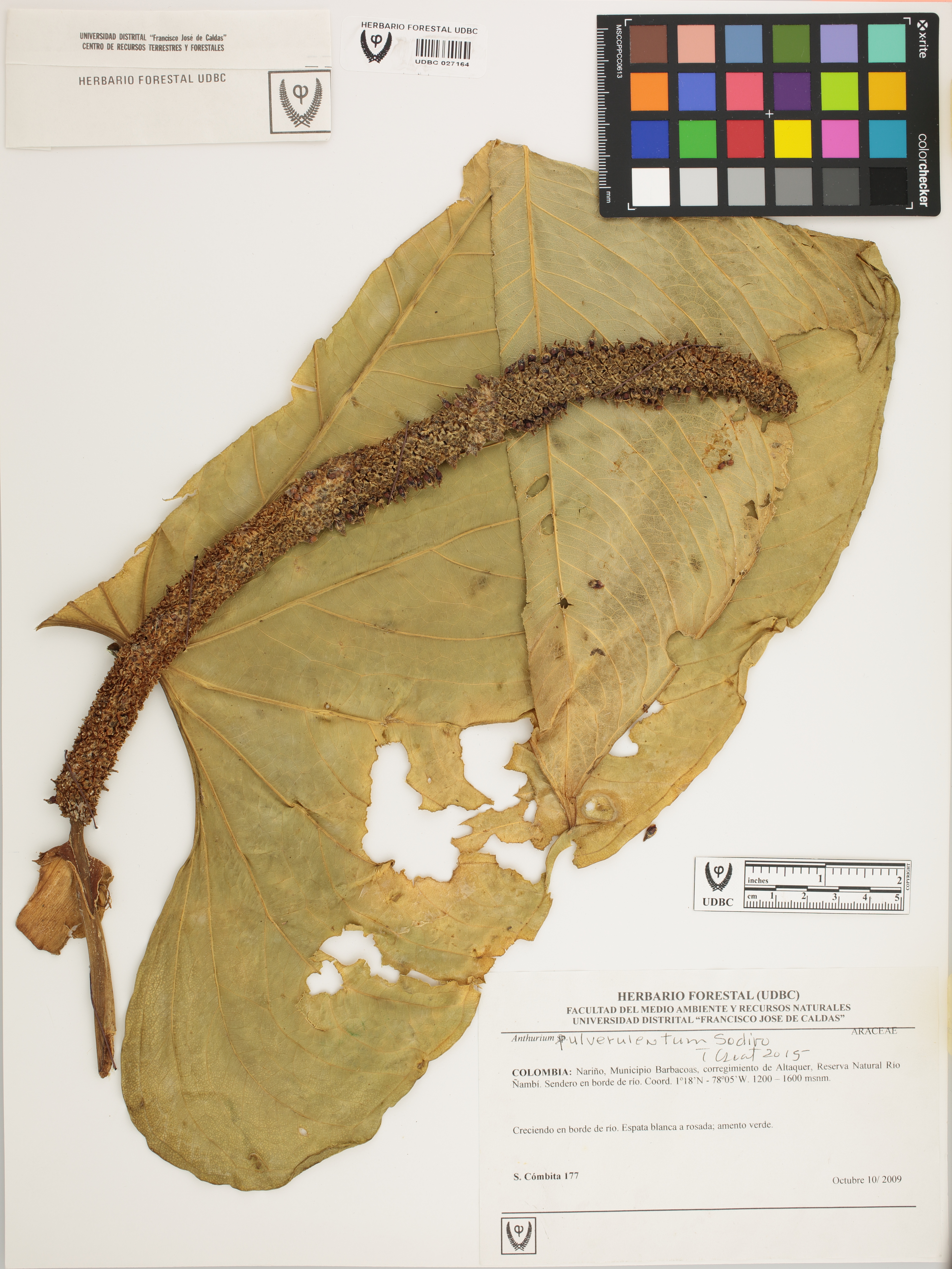 Fotografía del ejemplar Cómbita, S. 177, determinado como Anthurium pulverulentum en el año 2015
