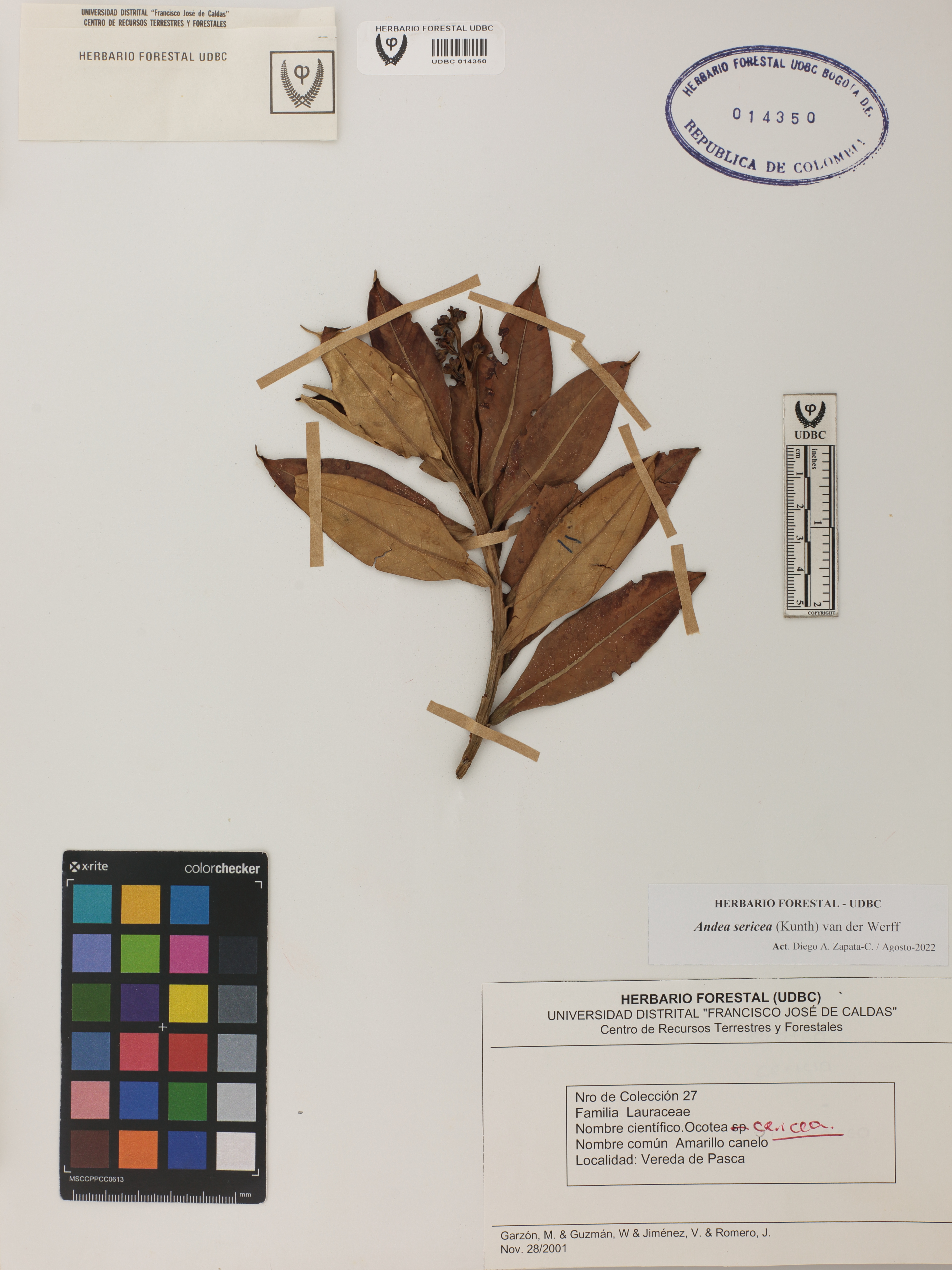 Fotografía del ejemplar Garzón, M. 27, determinado como Andea sericea en el año 2001