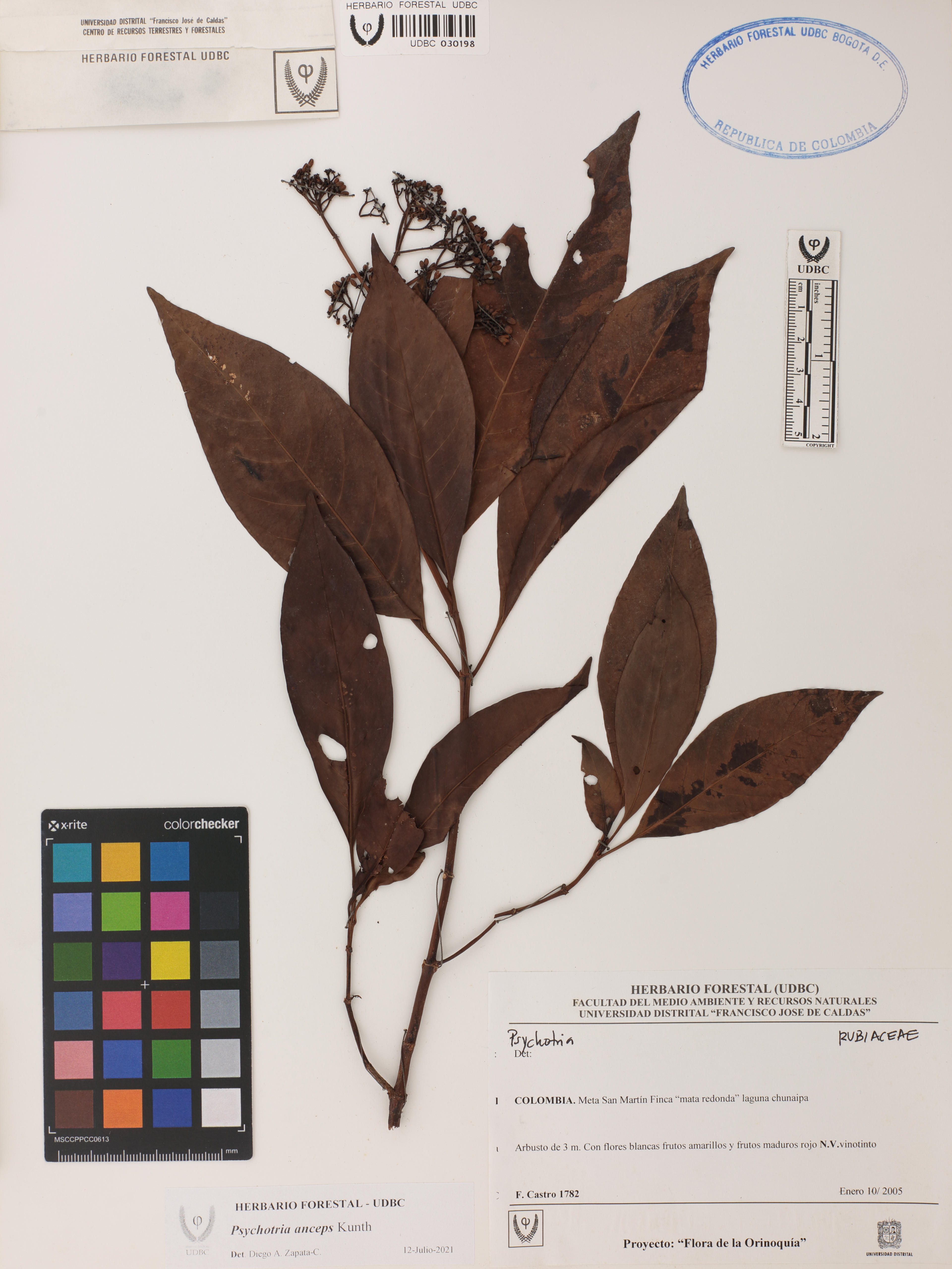 | dc.description | Fotografía del ejemplar Castro, F. 1782, determinado como Psychotria anceps en el año 2021 | |