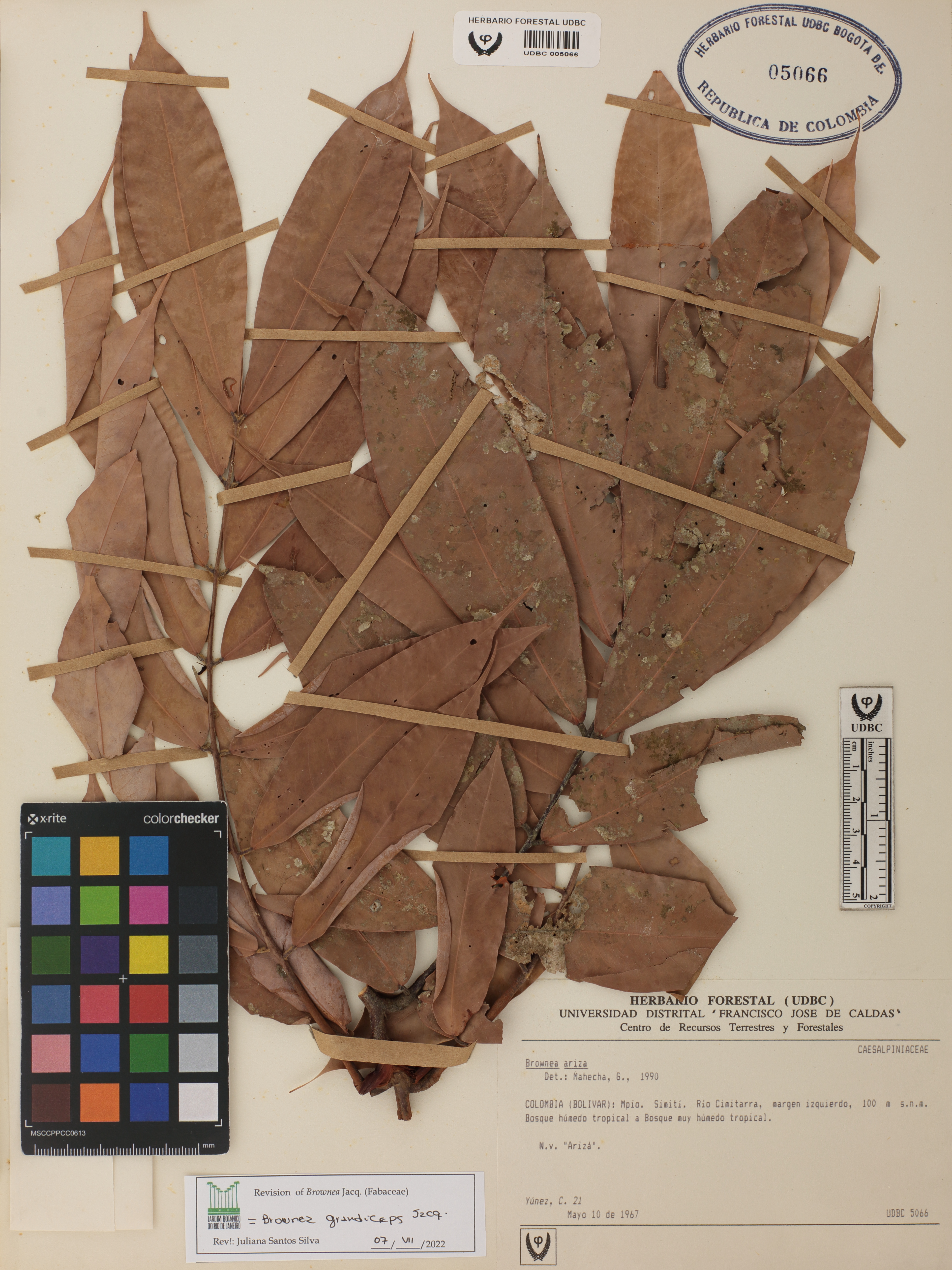 Fotografía del ejemplar Yúñez, C. 21, determinado como Brownea grandiceps