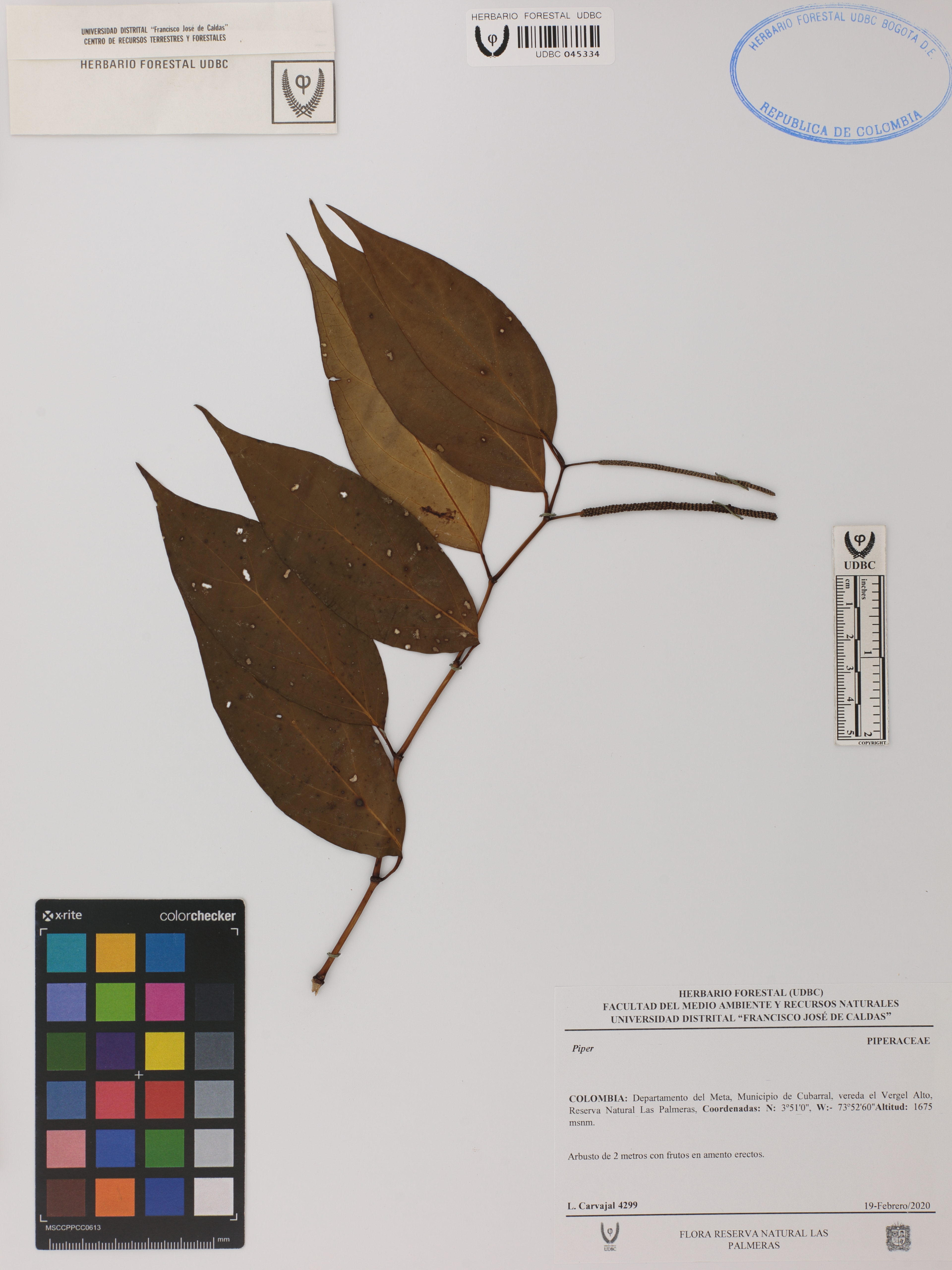 Fotografía del ejemplar Carvajal, L. 4299, determinado como Piper subconcinnum en el año 2024