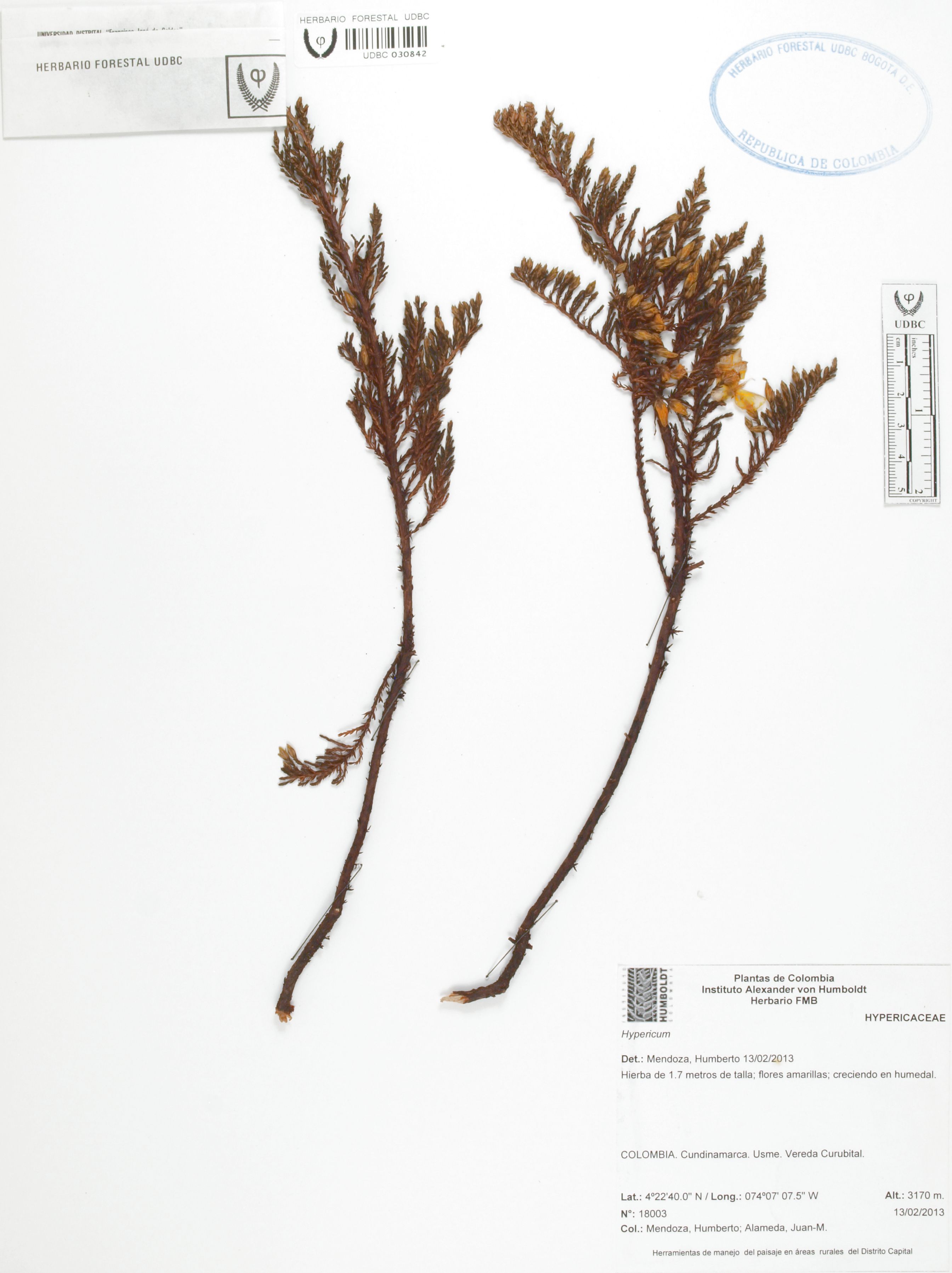 Fotografía del ejemplar Mendoza, H. 18003, determinado como Hypericum sp. en el año 2013
