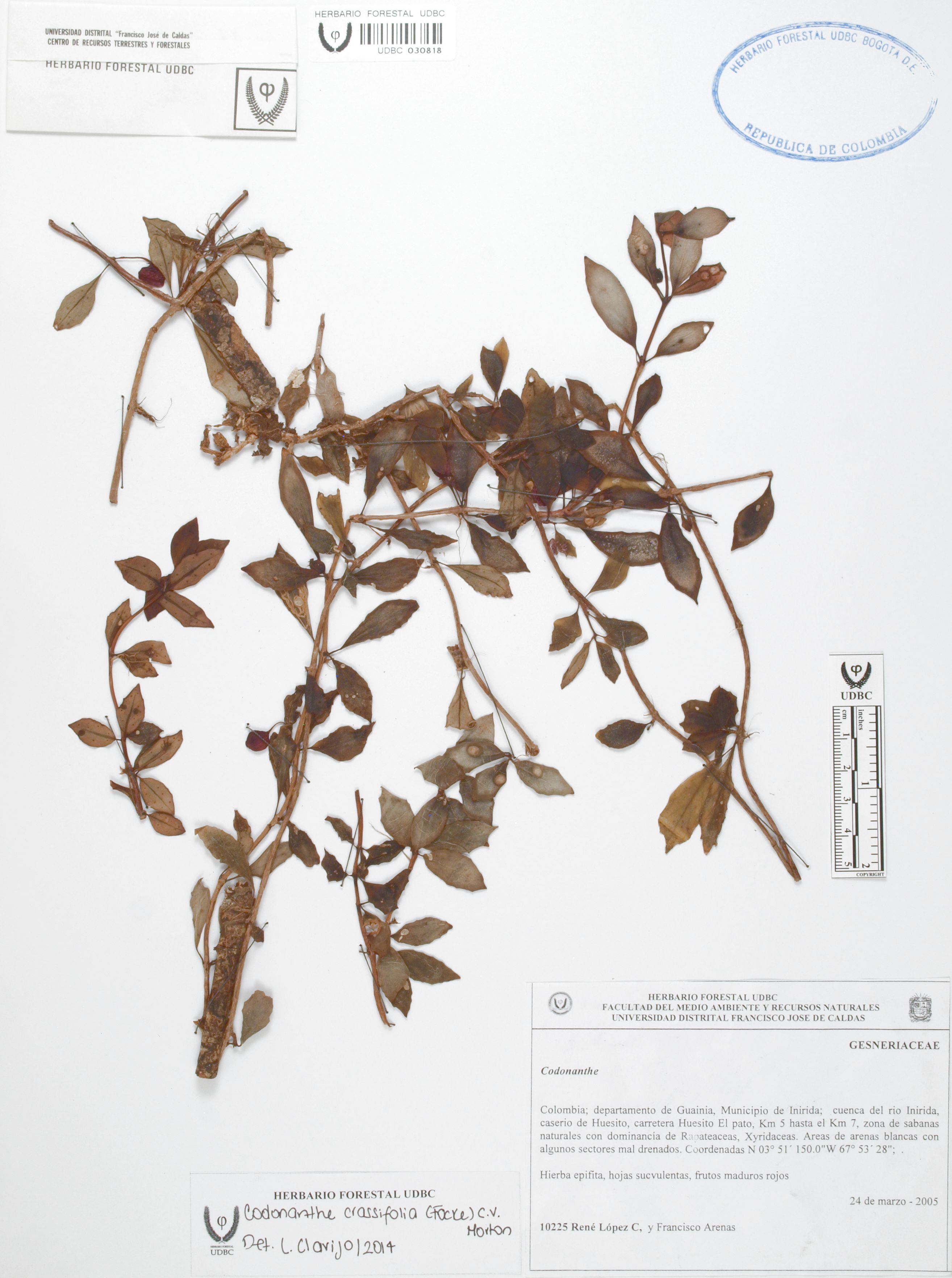 | dc.description | Fotografía del ejemplar López, R. 10225, determinado como Codonanthe crassifolia en el año 2014 | |