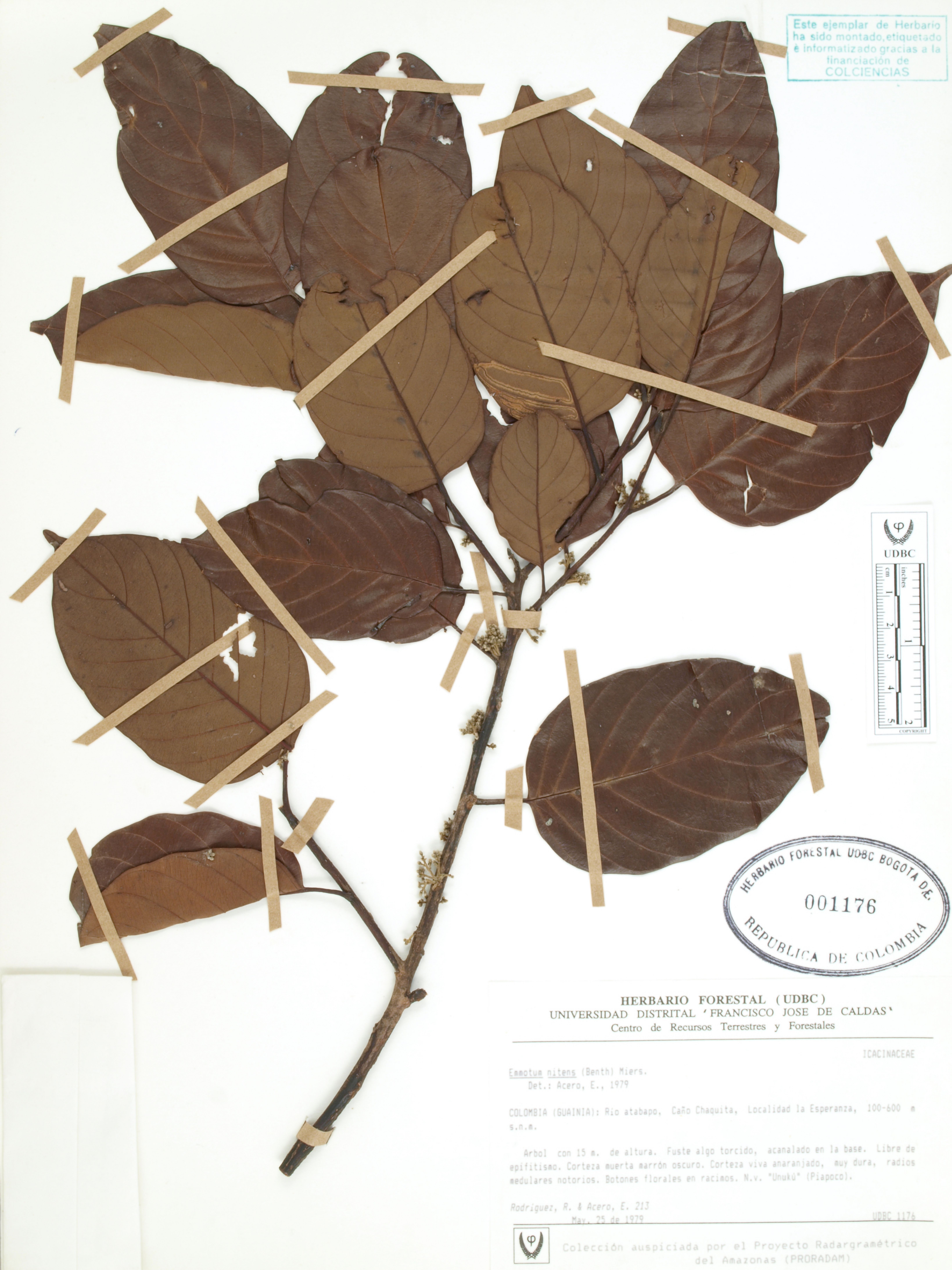 Fotografía del ejemplar Rodríguez, R. 213, determinado como Emmotum nitens en el año 1979
