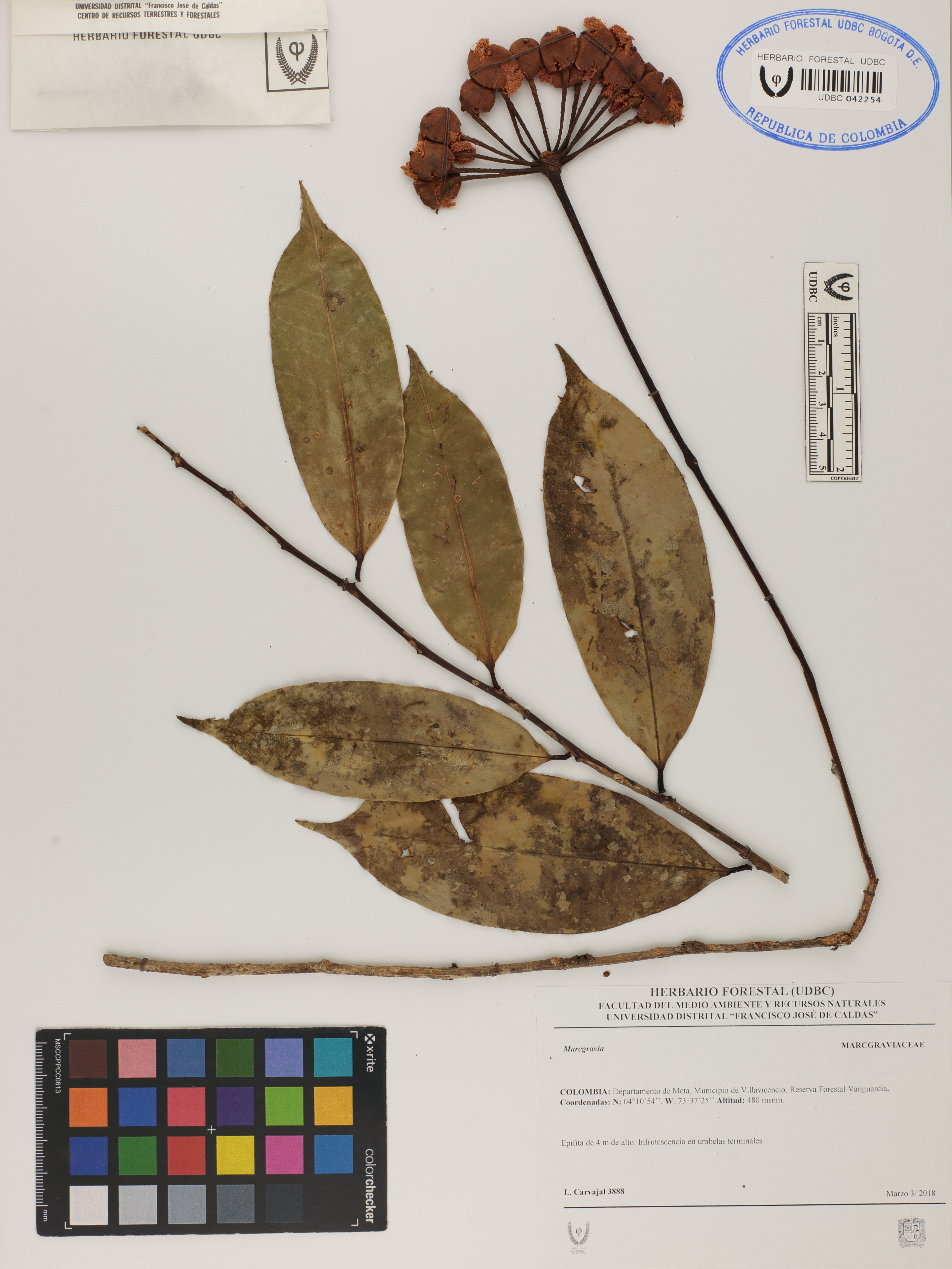 | dc.description | Fotografía del ejemplar Carvajal, L. 3888, determinado como Marcgravia sp. | |