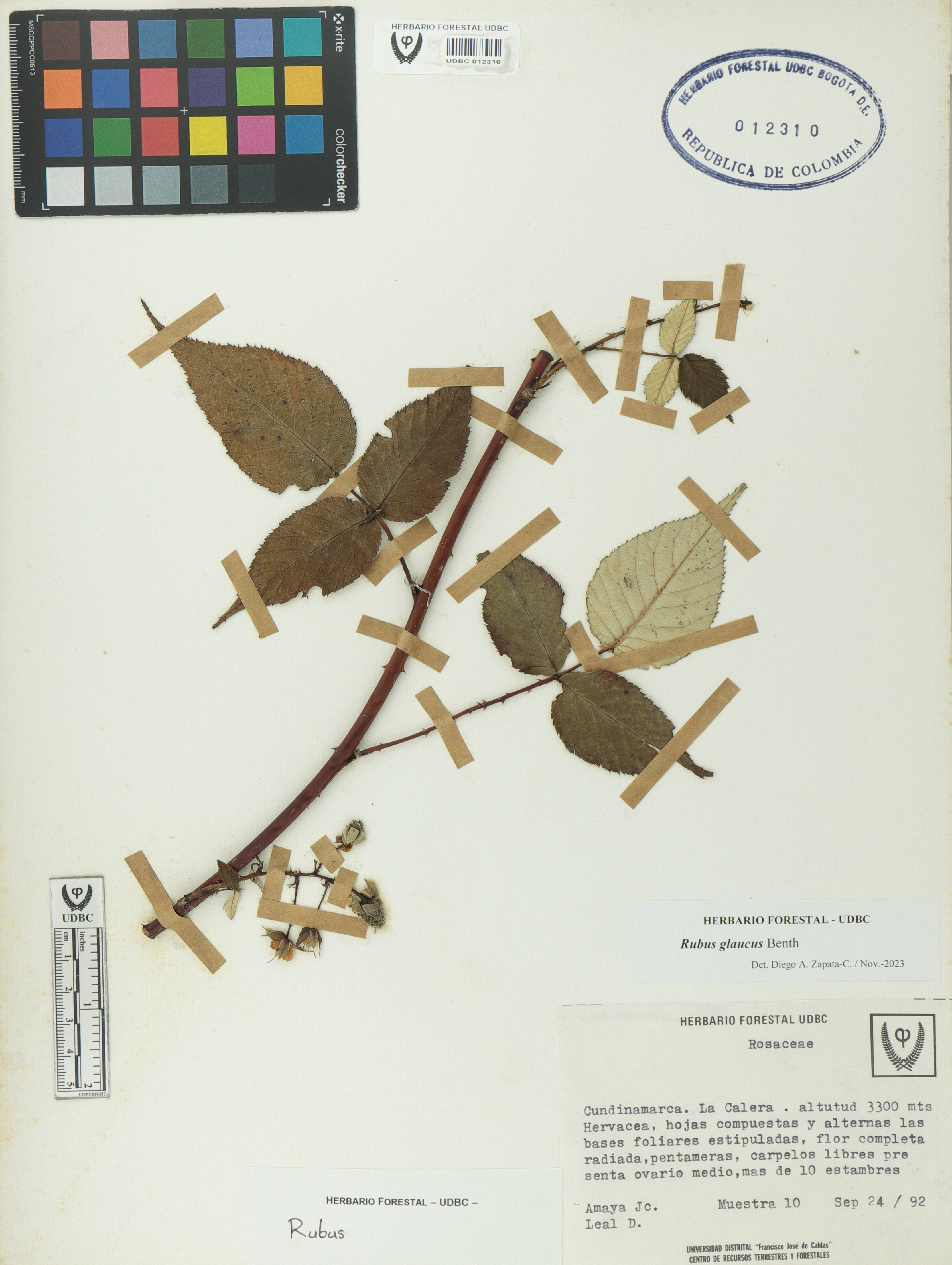 | dc.description | Fotografía del ejemplar Amaya, J. 10, determinado como Rubus glaucus en el año 2023 | |