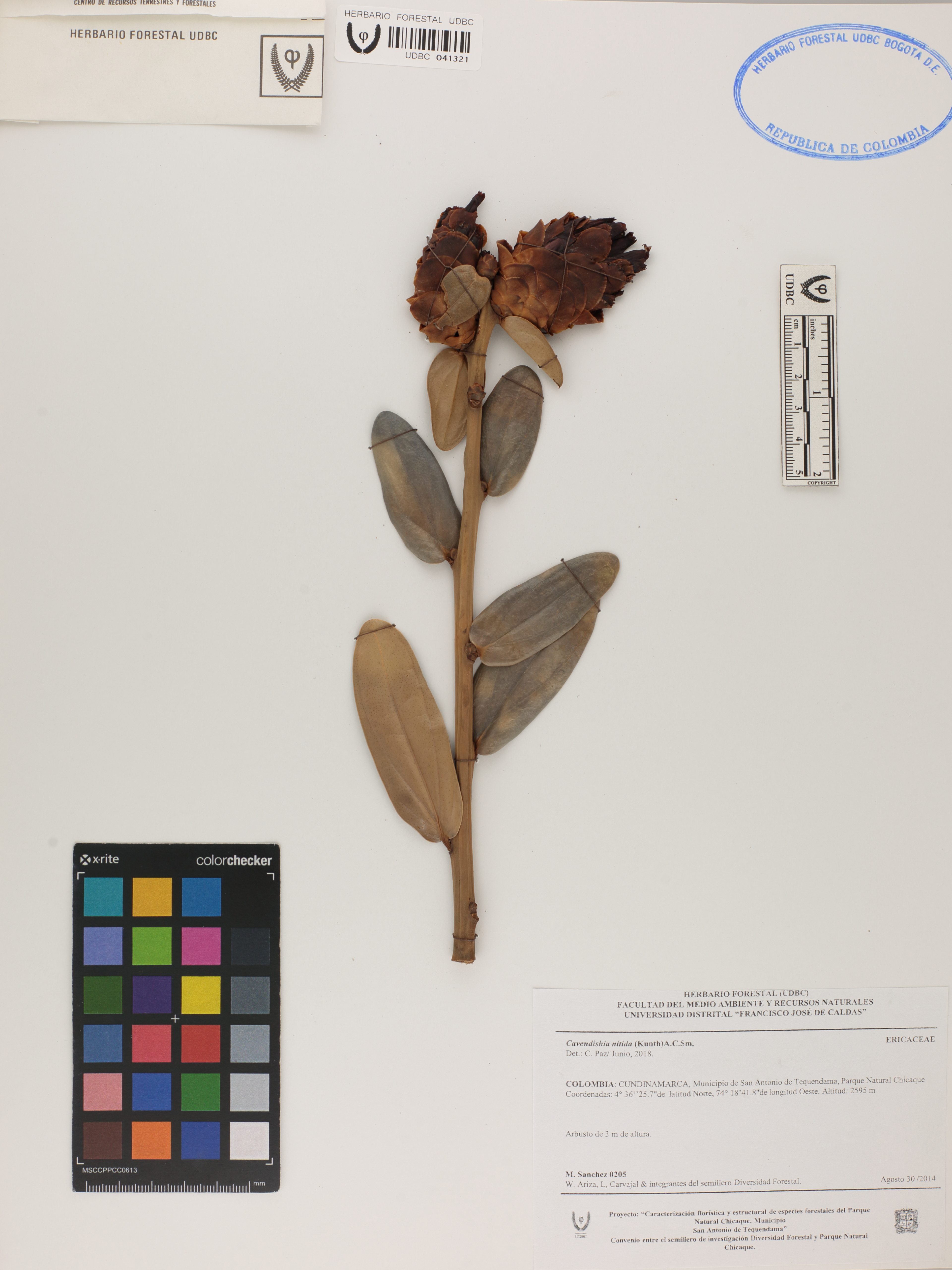 Fotografía del ejemplar Sánchez, M. 205, determinado como Cavendishia nitida en el año 2018