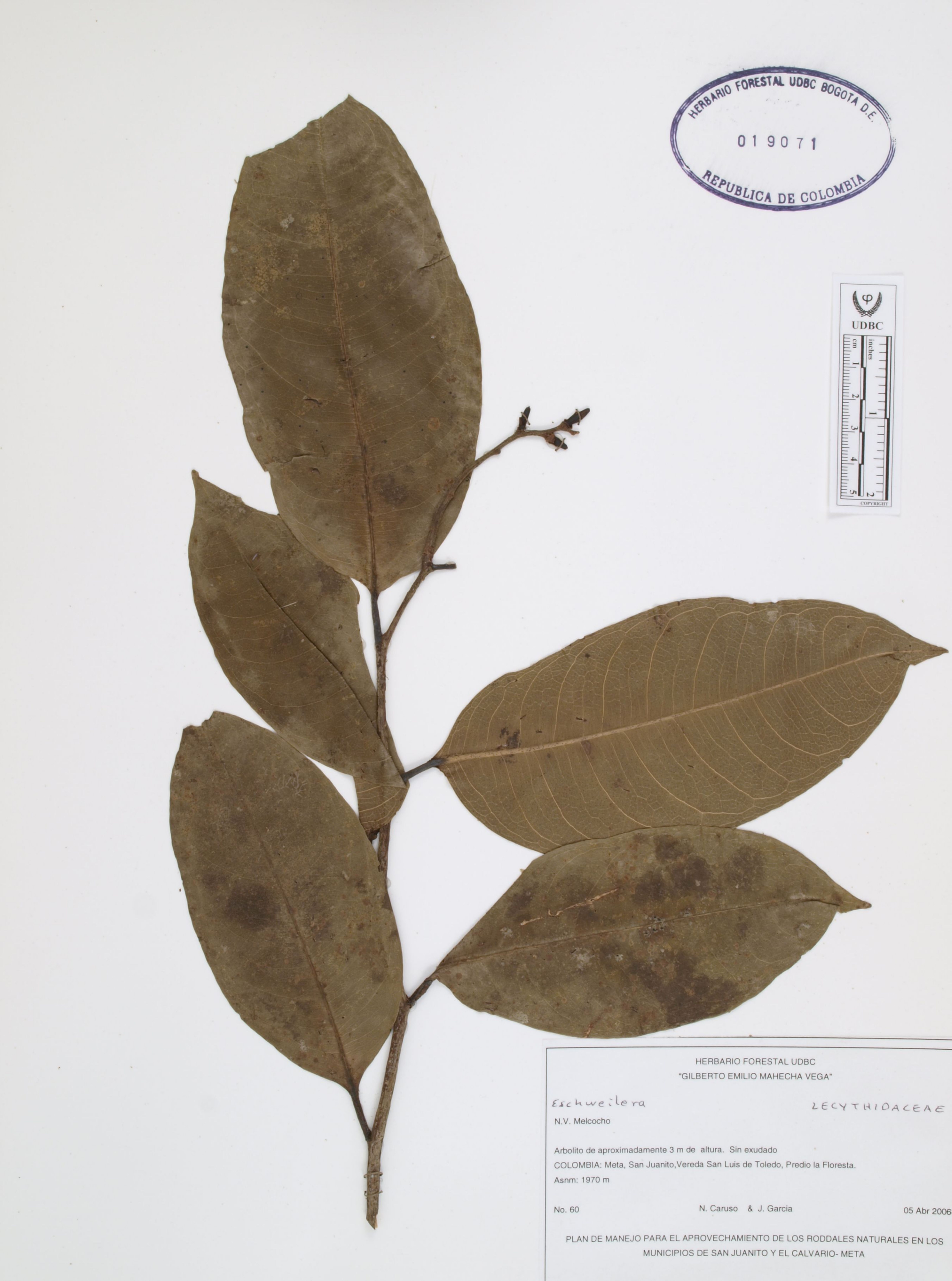 Fotografía del ejemplar Caruso, N. 60, determinado como Eschweilera sp.