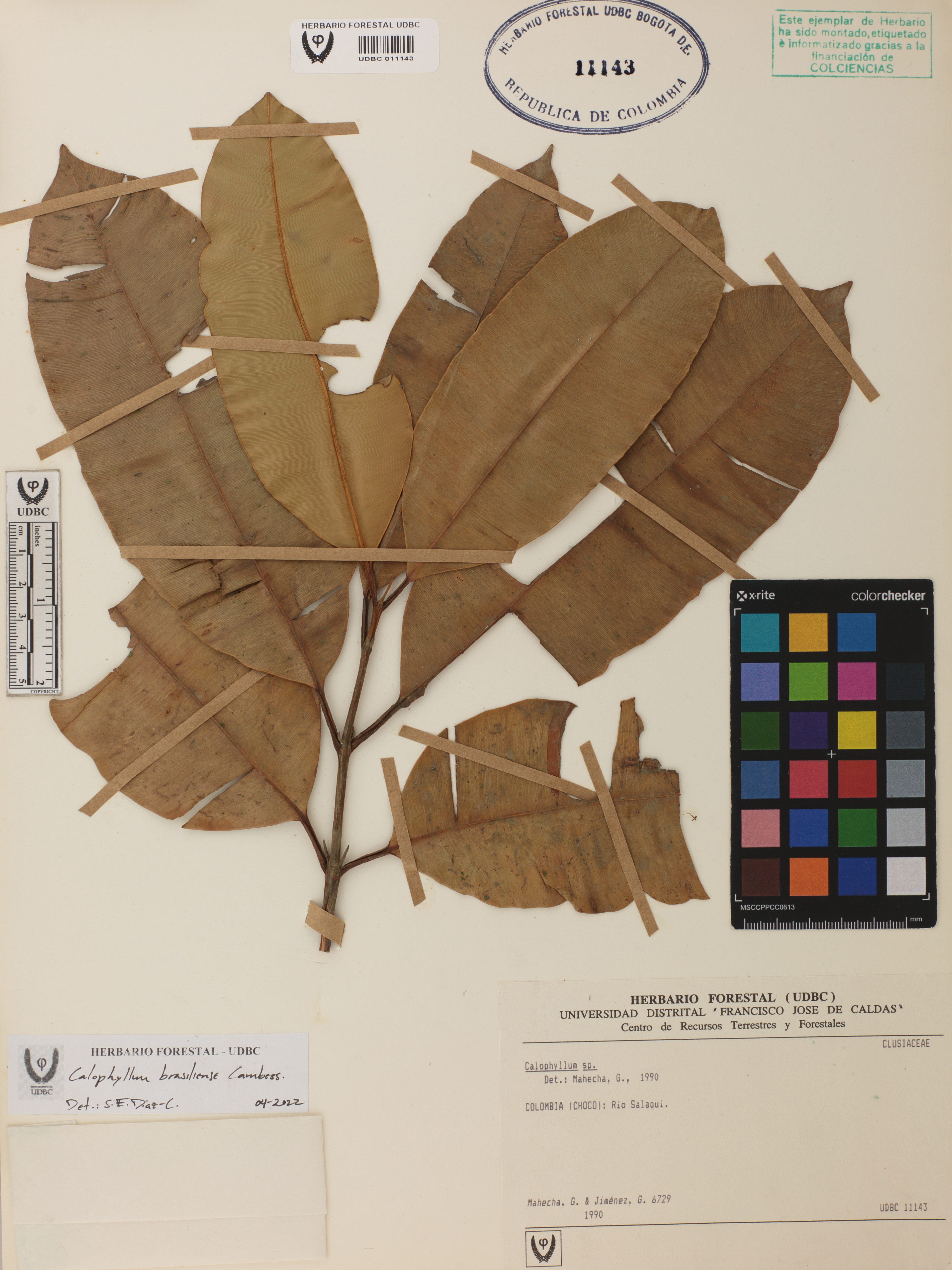 Fotografía del ejemplar Mahecha, G. 6729, determinado como Calophyllum brasiliense en el año 2022