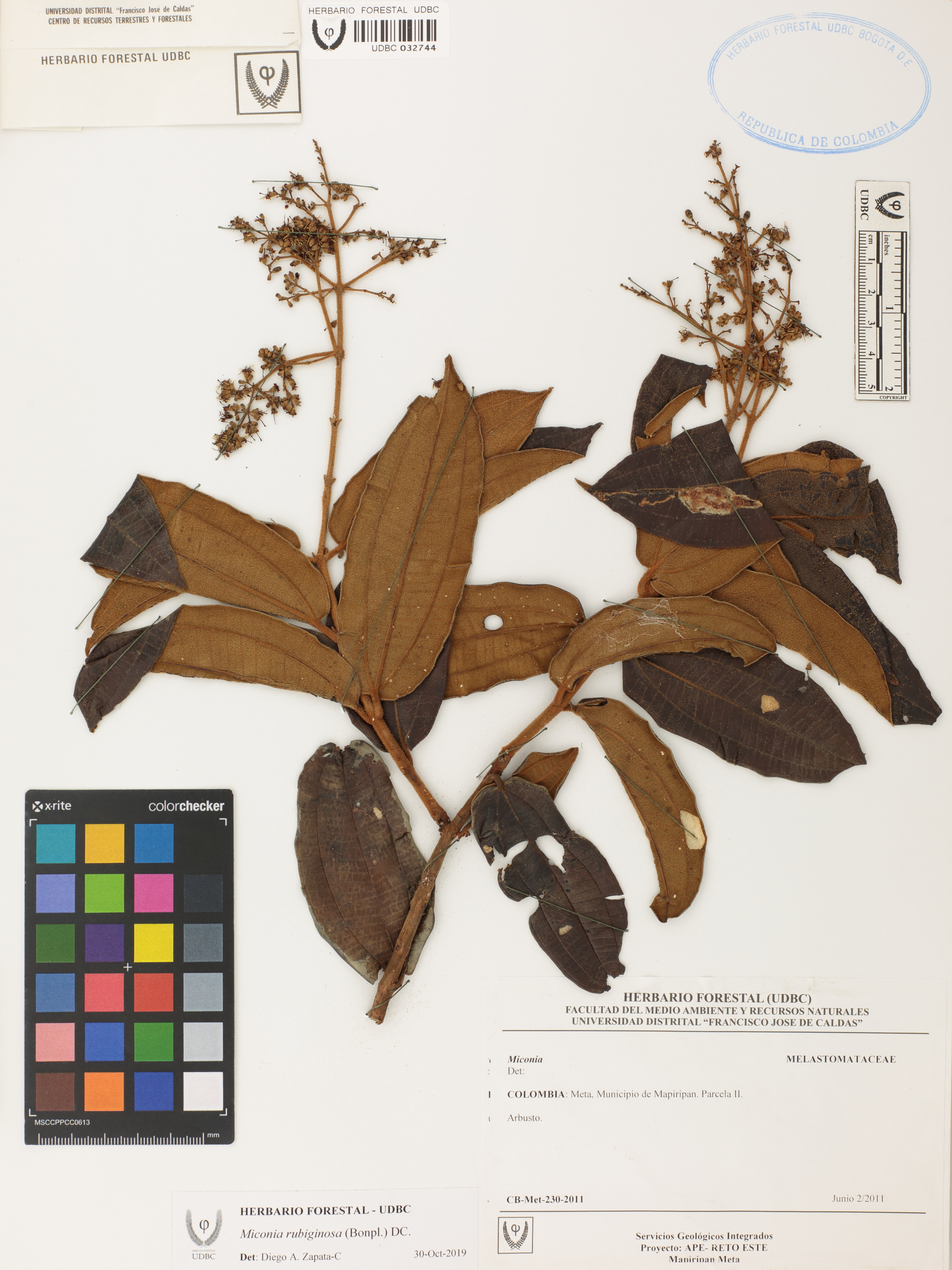 Fotografía del ejemplar SD 230, determinado como Miconia rubiginosa en el año 2019
