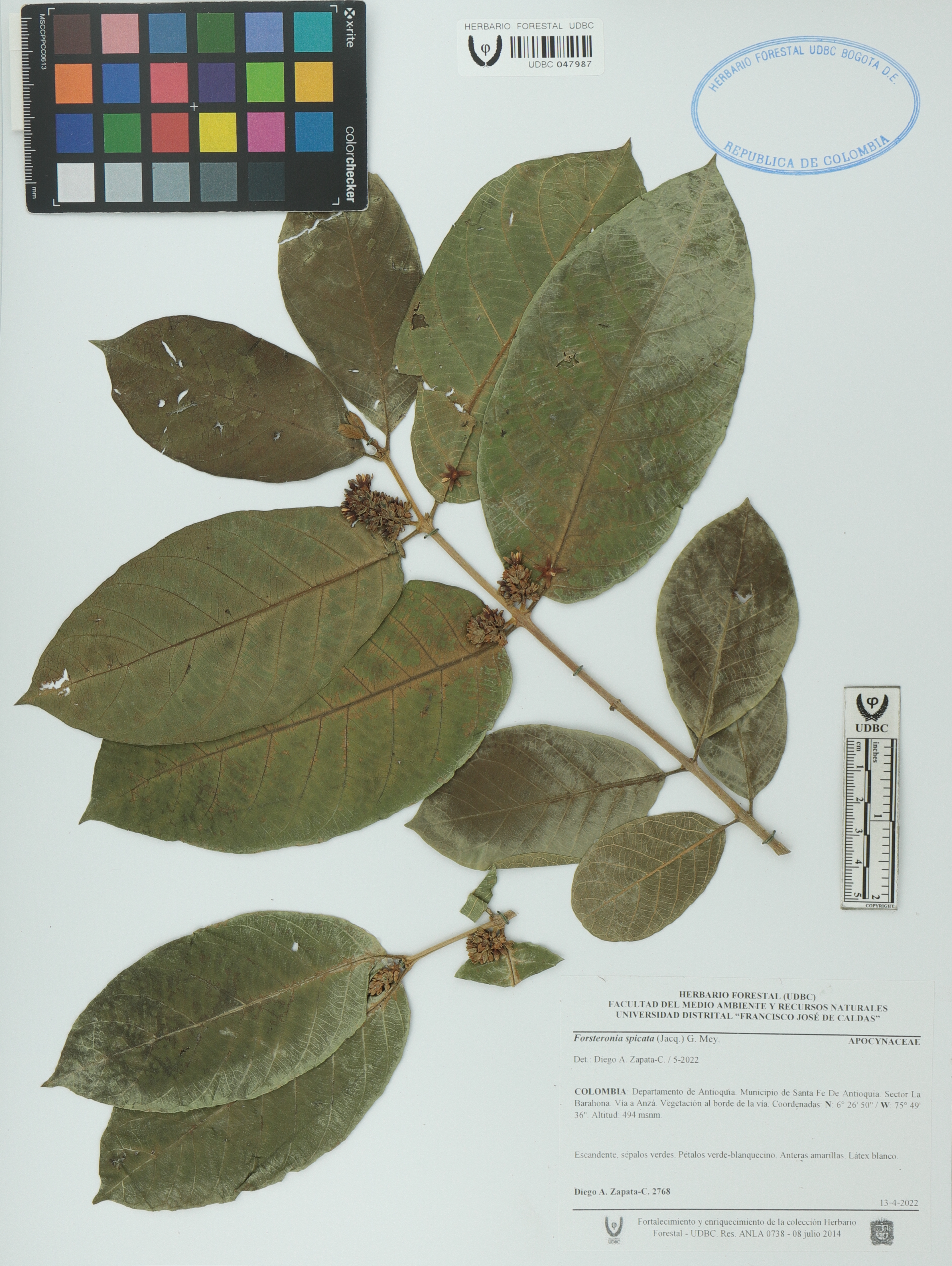 Fotografía del ejemplar Zapata-C., D. 2768, determinado como Forsteronia spicata en el año 2022