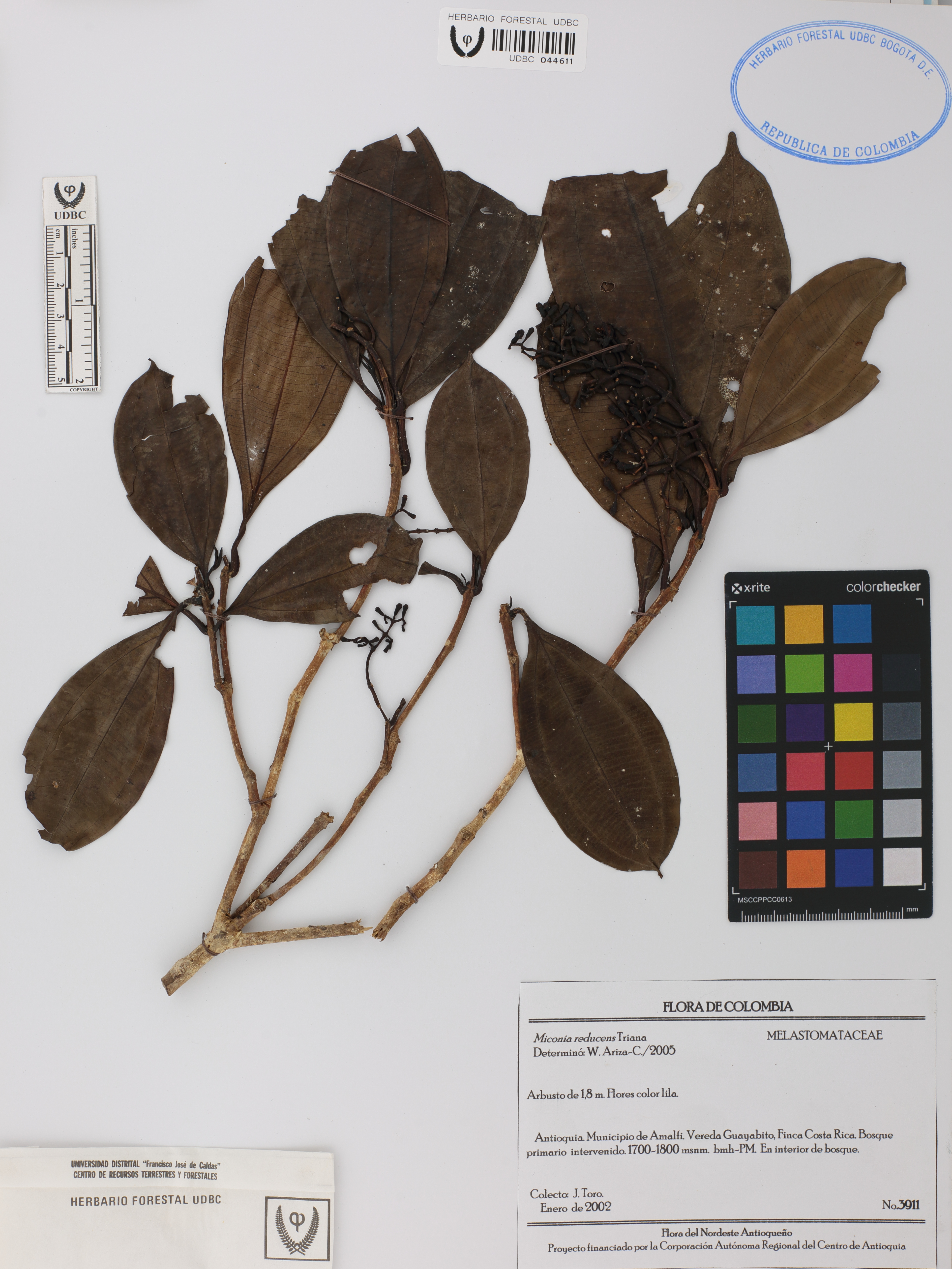 Fotografía del ejemplar Toro, J. 3911, determinado como Miconia reducens en el año 2005