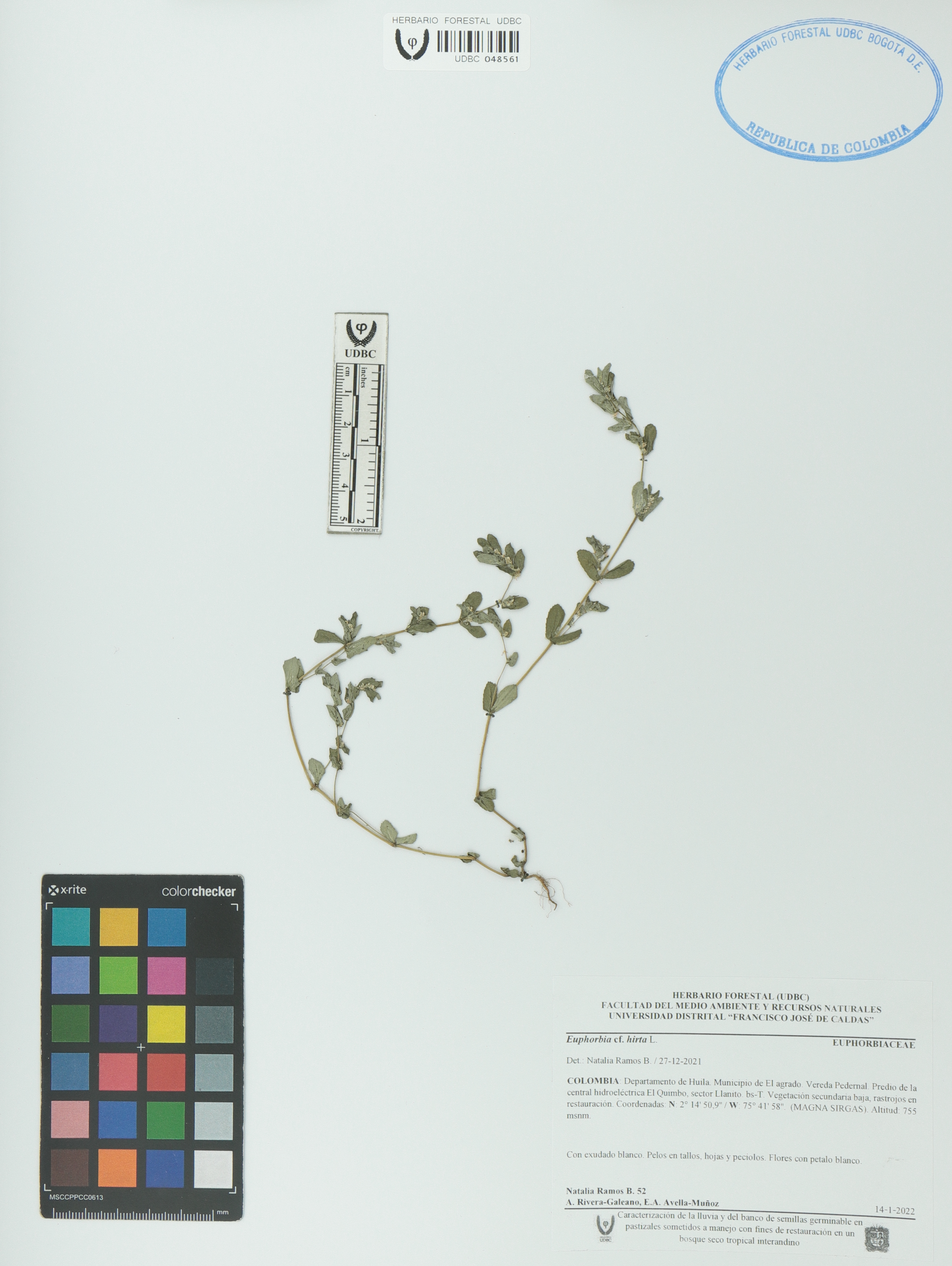 Fotografía del ejemplar Ramos-B., Natalia 52, determinado como Euphorbia hirta en el año 2021
