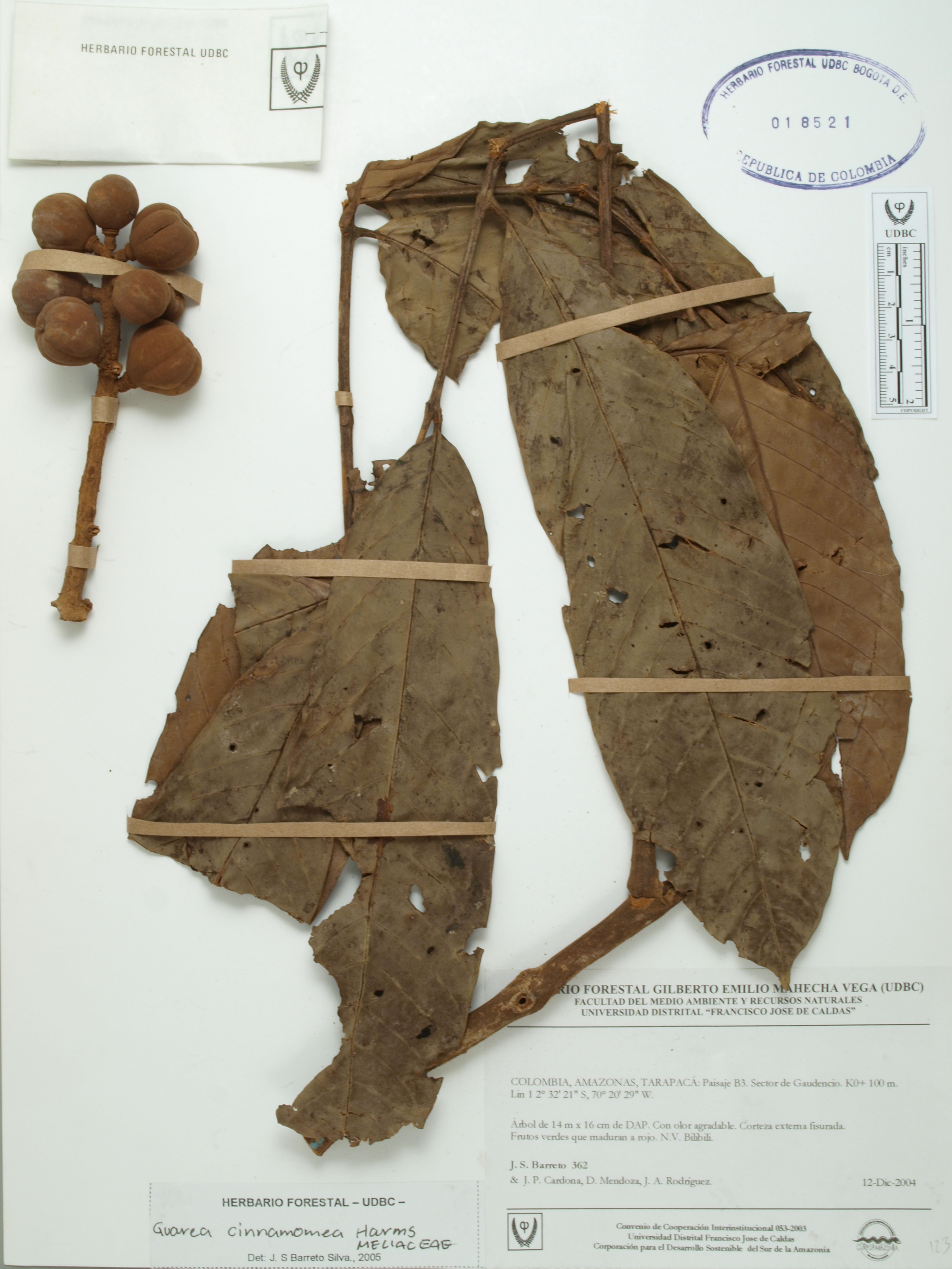 Fotografía del ejemplar Barreto, J. 362, determinado como Guarea cinnamomea en el año 2005