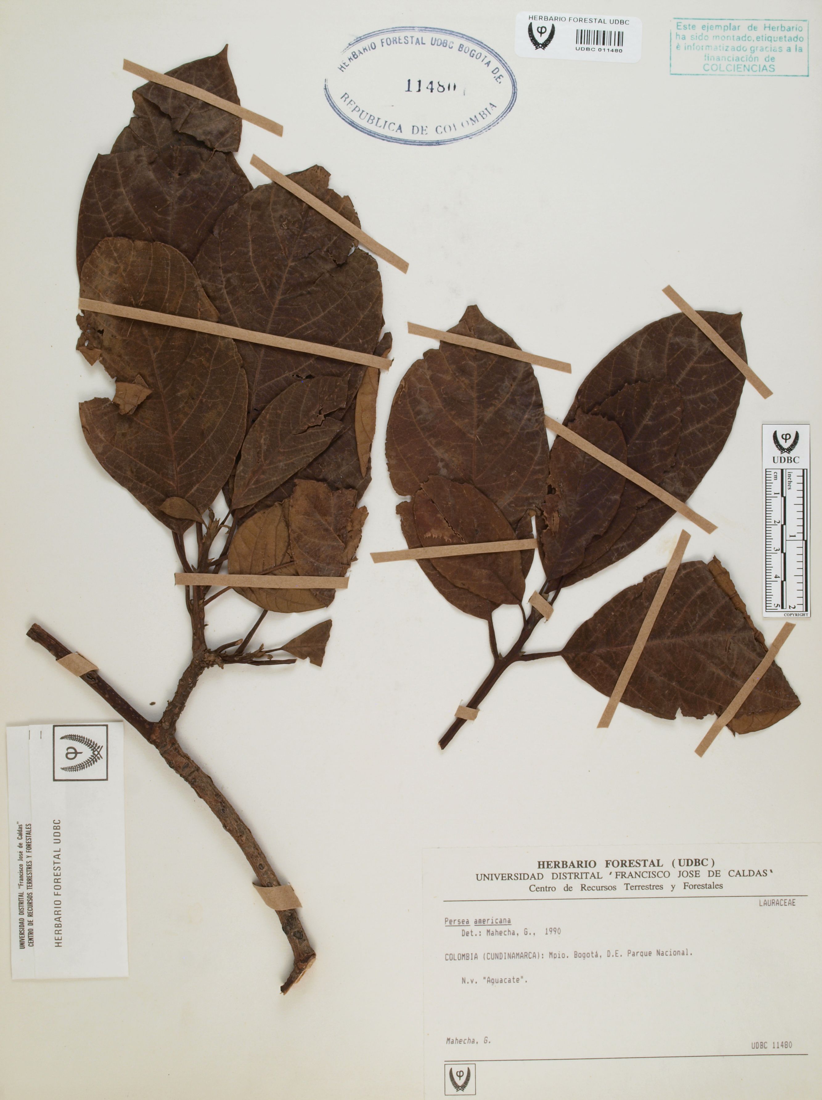 Fotografía del ejemplar Mahecha, G., determinado como Persea americana en el año 1990