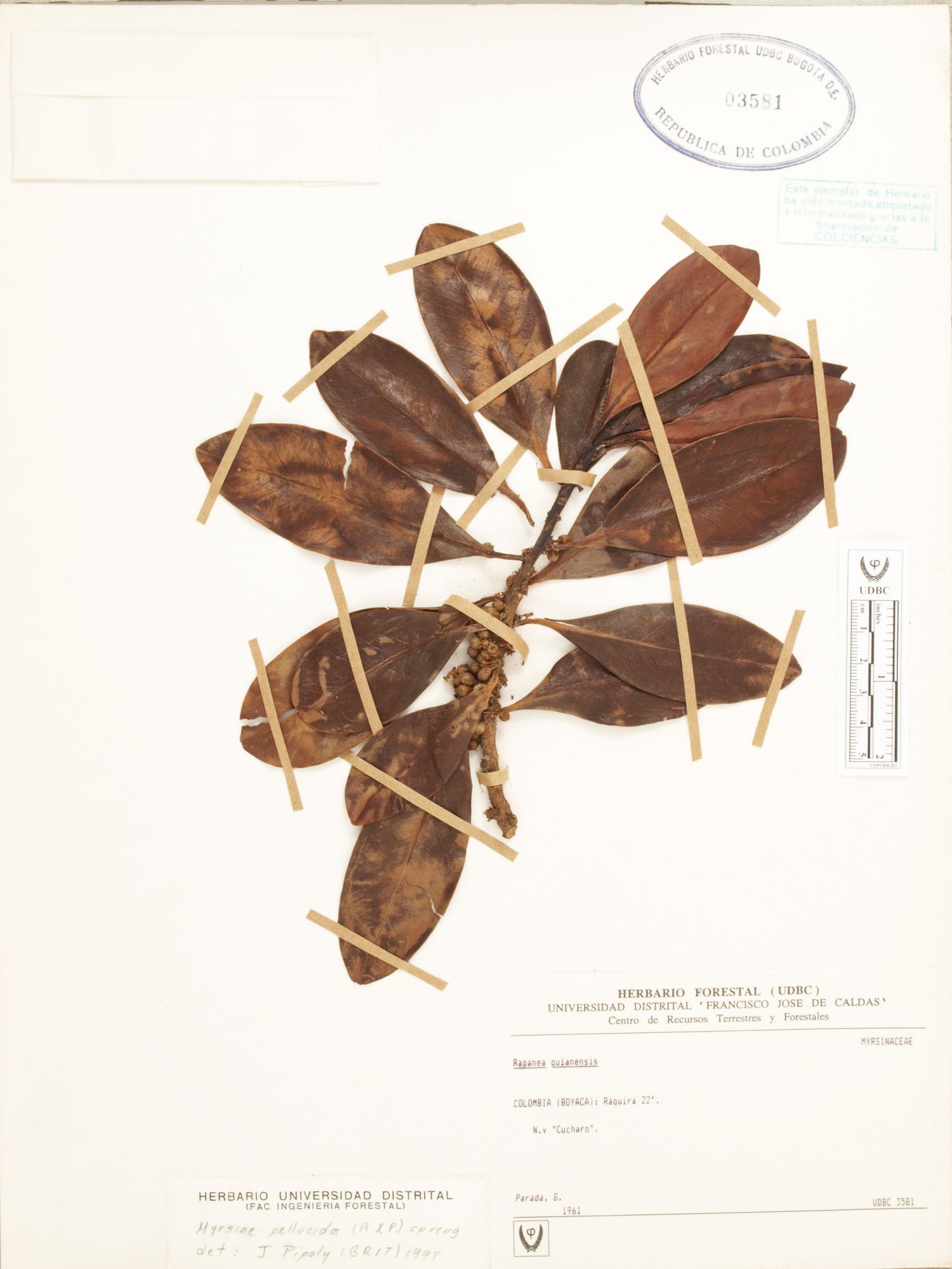 Fotografía del ejemplar Parada, G., determinado como Myrsine pellucida en el año 1995