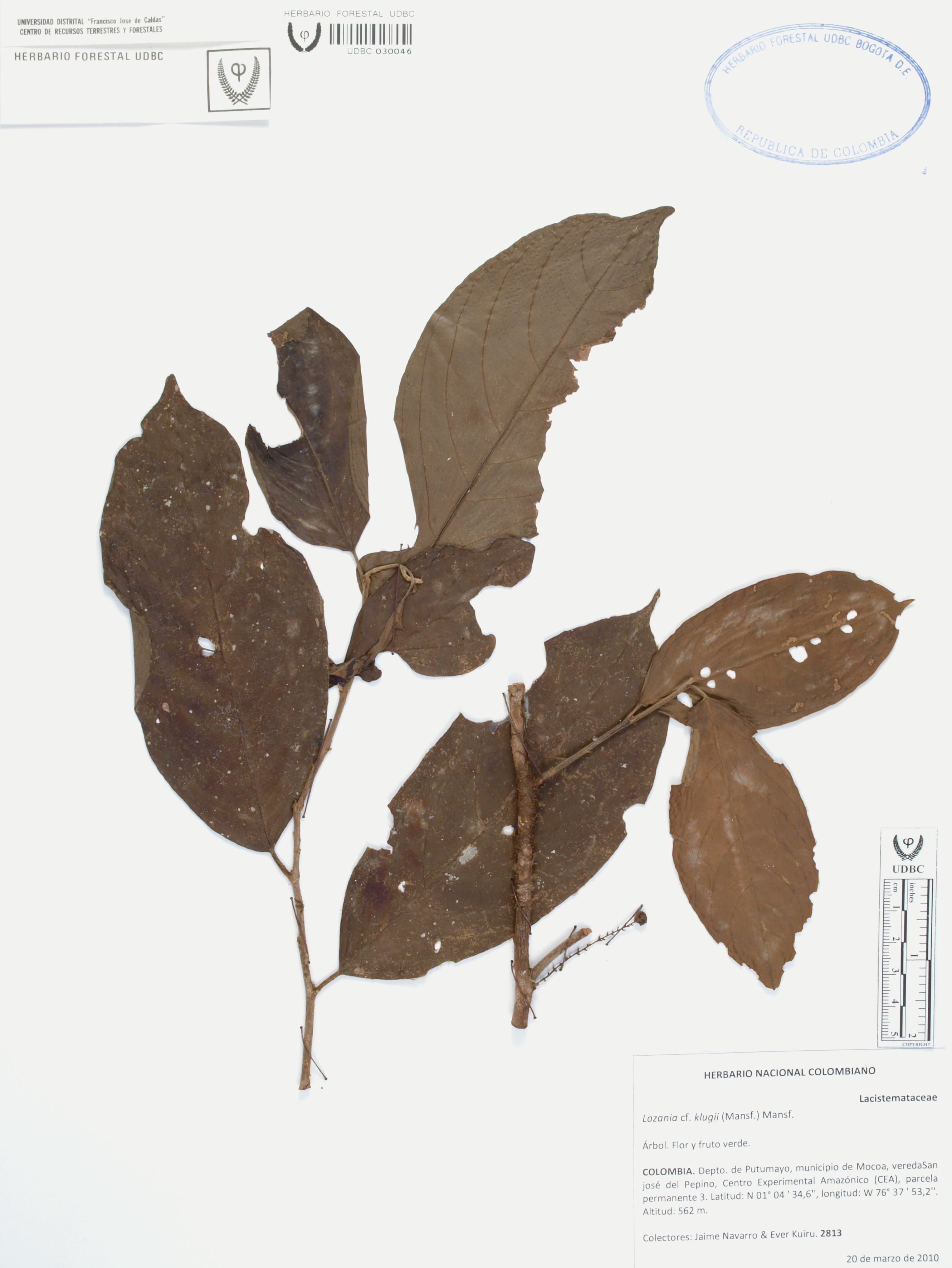 Fotografía del ejemplar Navarro, J. 2813, determinado como Lozania klugii
