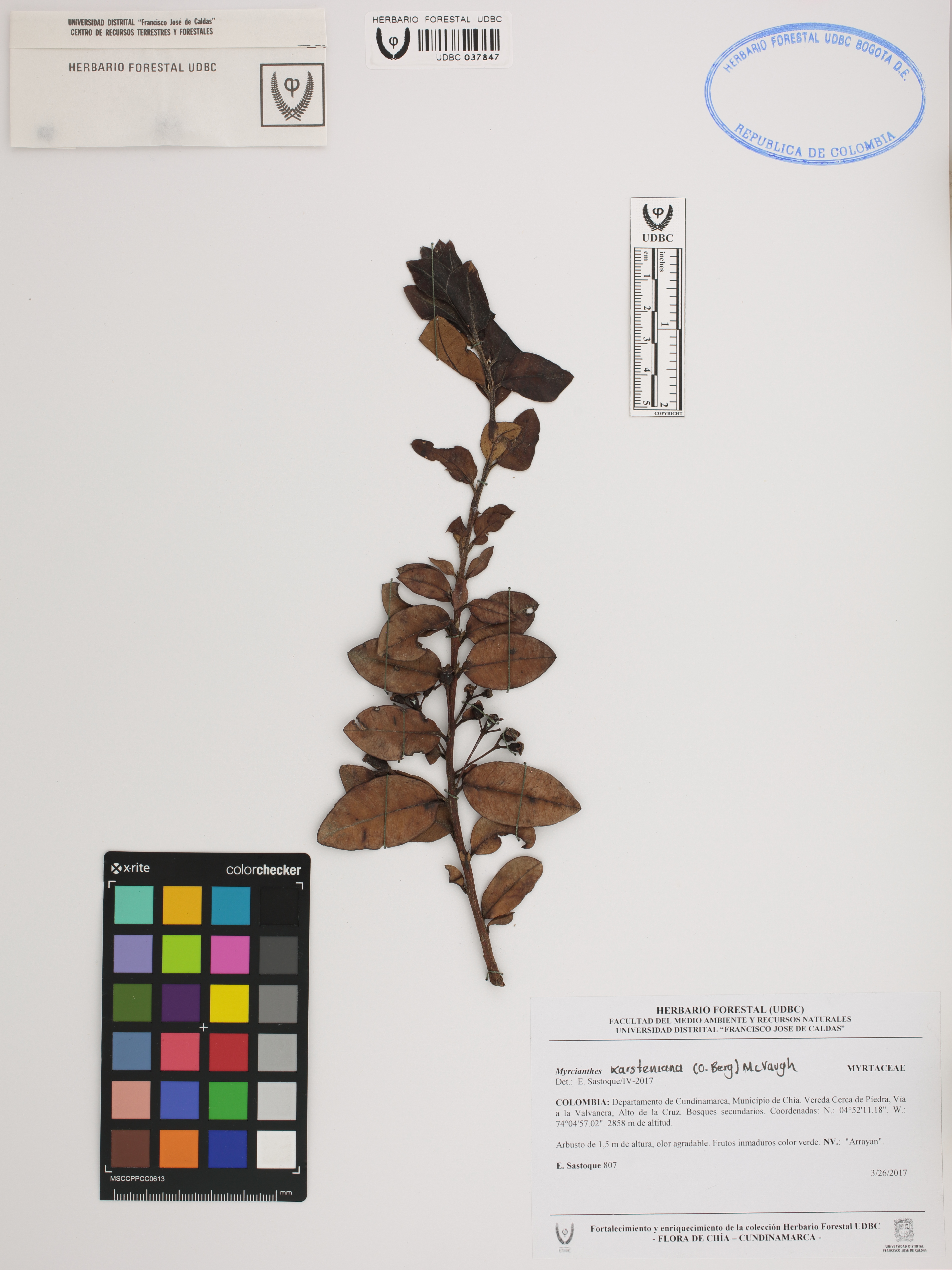 Fotografía del ejemplar Sastoque, E. 807, determinado como Myrcianthes karsteniana en el año 2017