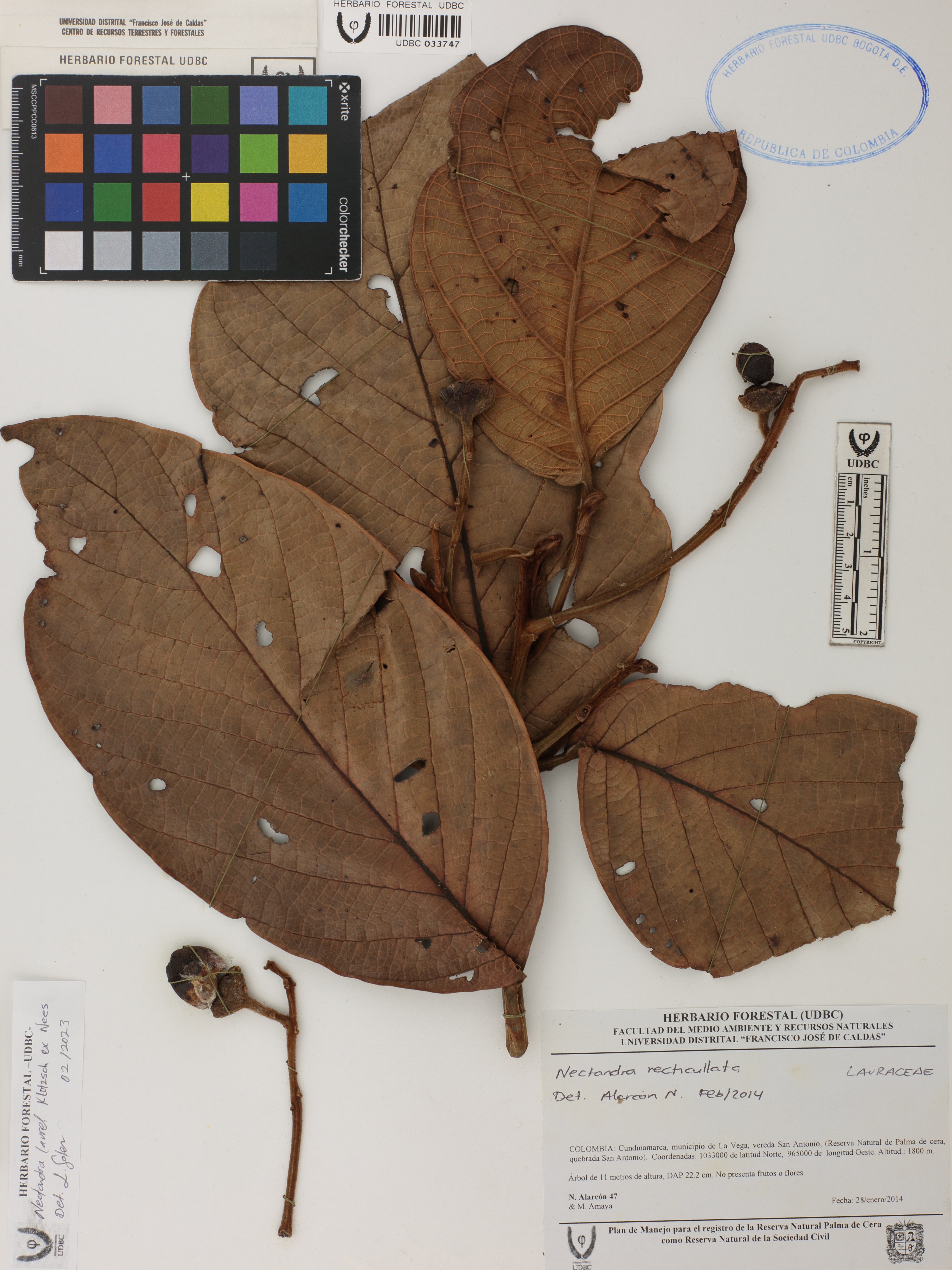 Fotografía del ejemplar Alarcón, N. 47, determinado como Nectandra laurel en el año 2023