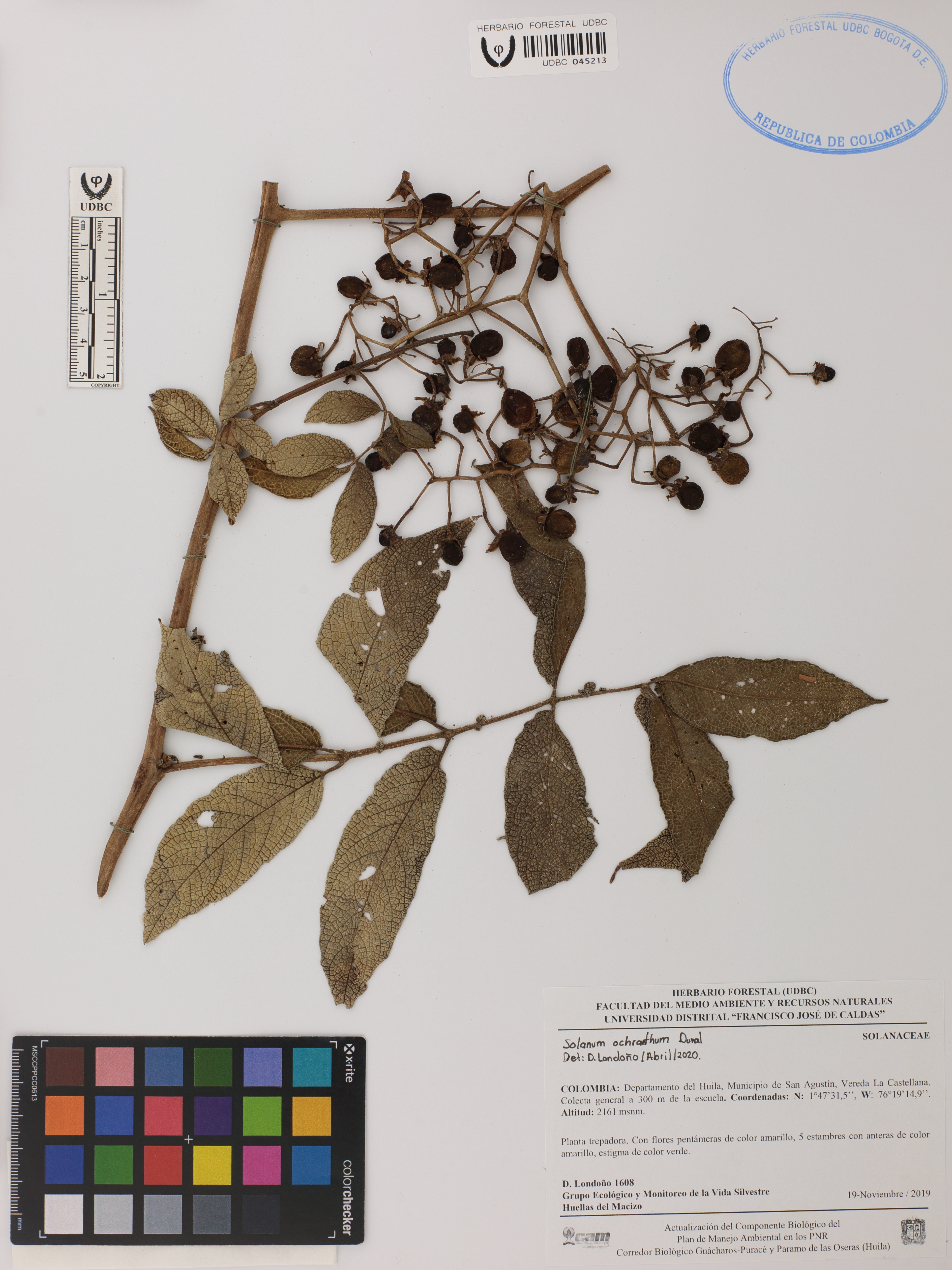 Fotografía del ejemplar Londoño, D. 1608, determinado como Solanum ochranthum en el año 2020