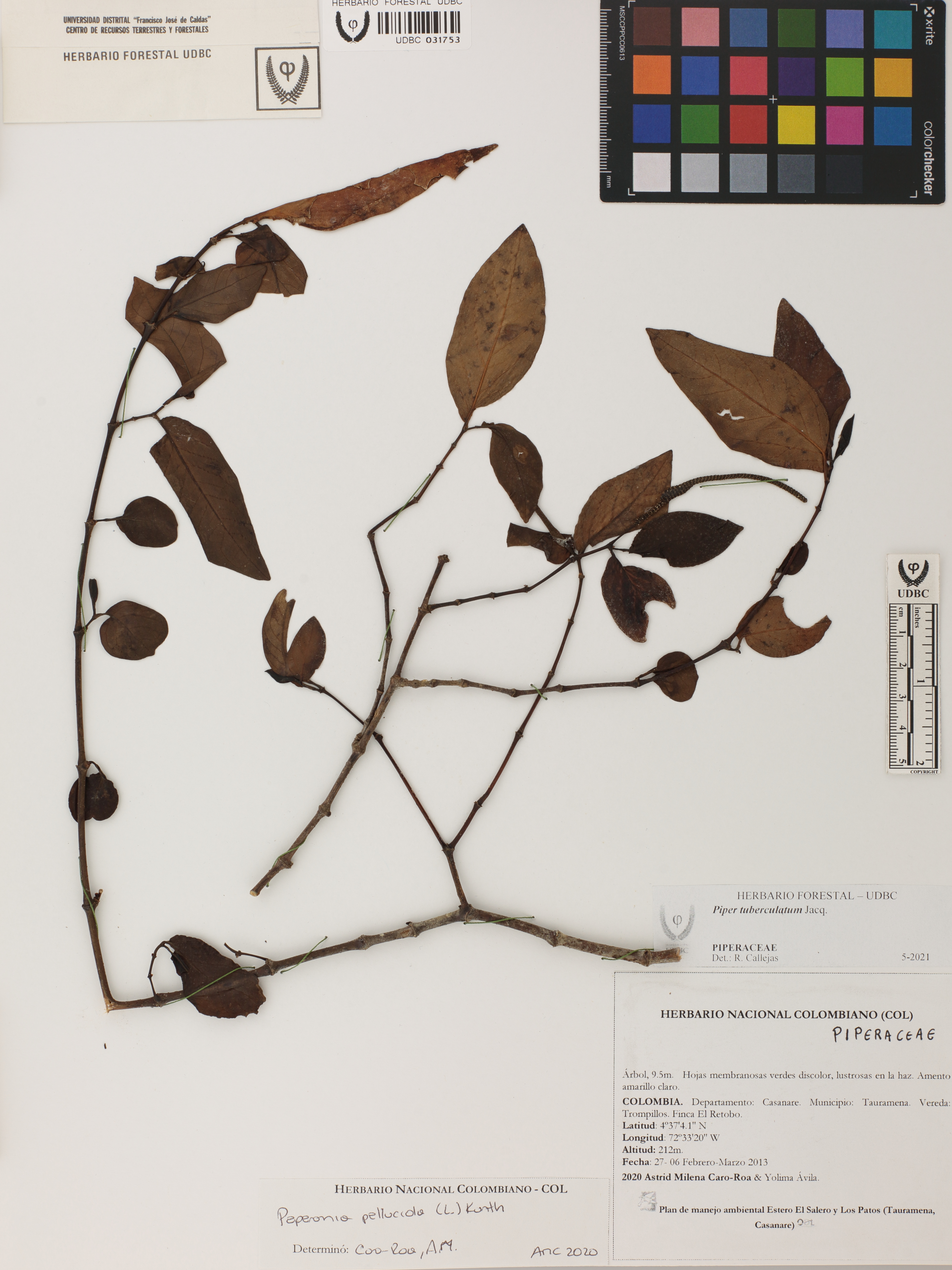 | dc.description | Fotografía del ejemplar Caro-Roa, A. 2020, determinado como Piper tuberculatum en el año 2021 | |