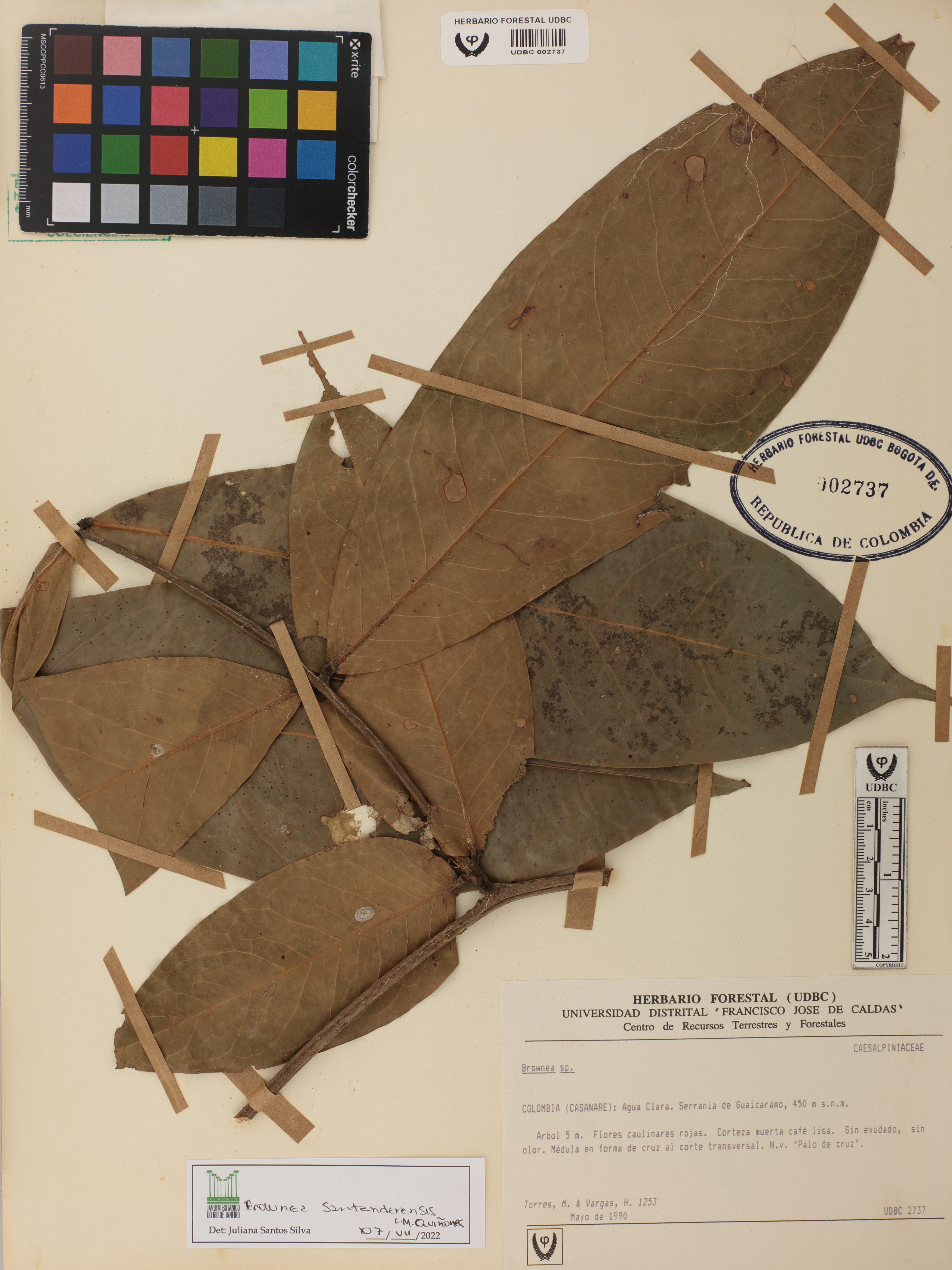 | dc.description | Fotografía del ejemplar Torres, M. 1253, determinado como Brownea santanderensis en el año 2022 | |