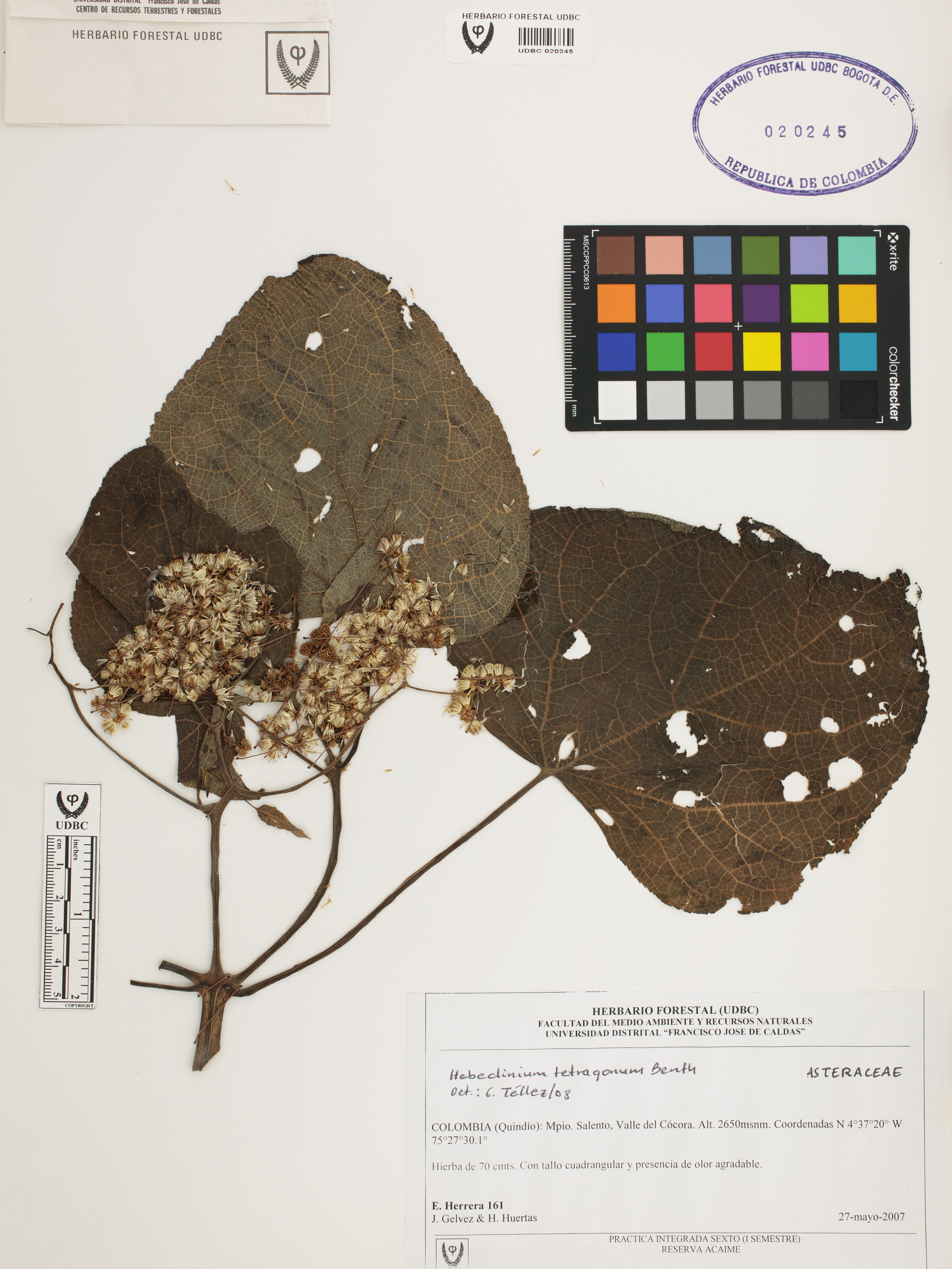 Fotografía del ejemplar Herrera, E. 161, determinado como Hebeclinium tetragonum en el año 2008