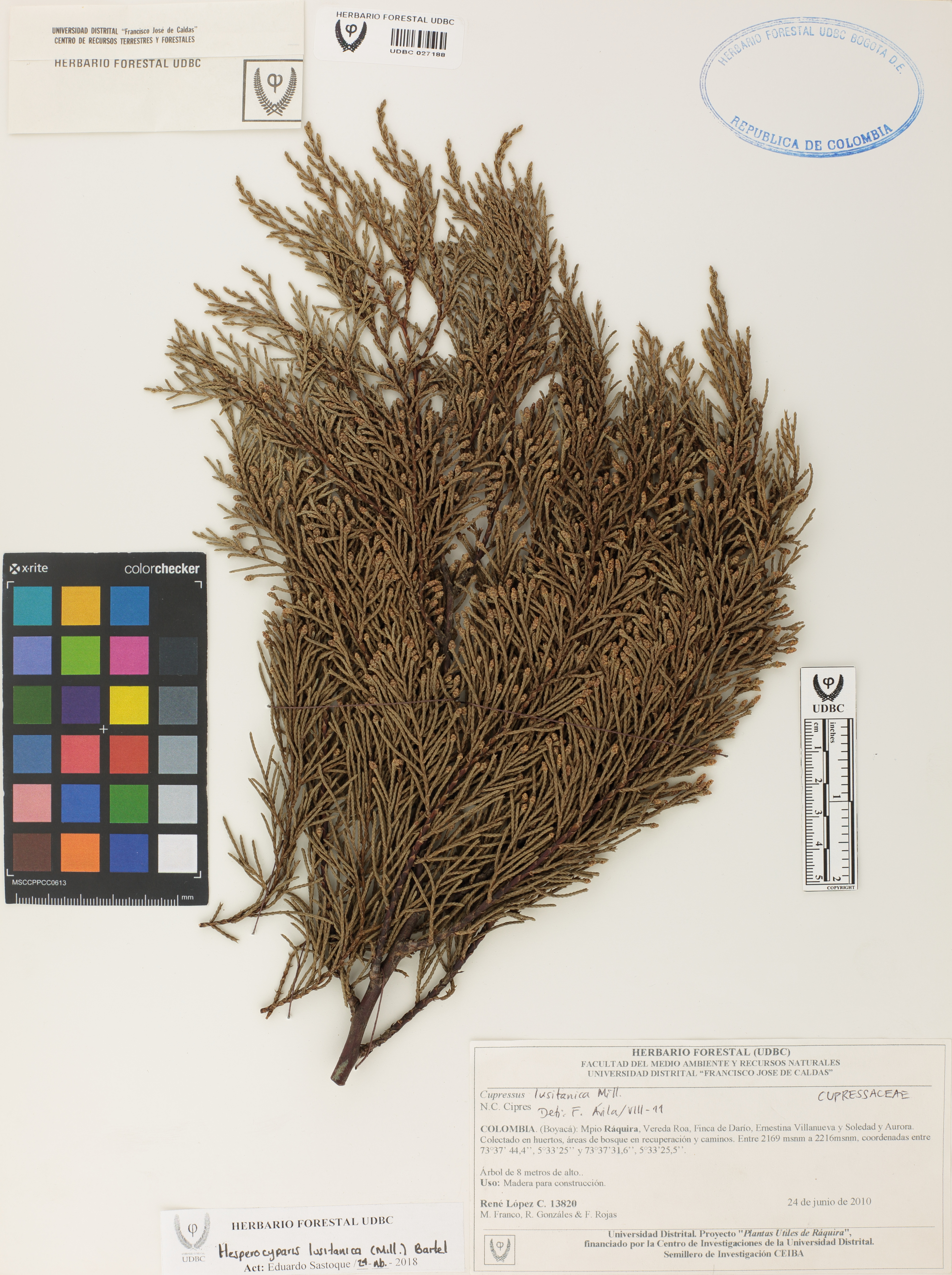Fotografía del ejemplar López, R. 13820, determinado como Hesperocyparis lusitanica en el año 2011