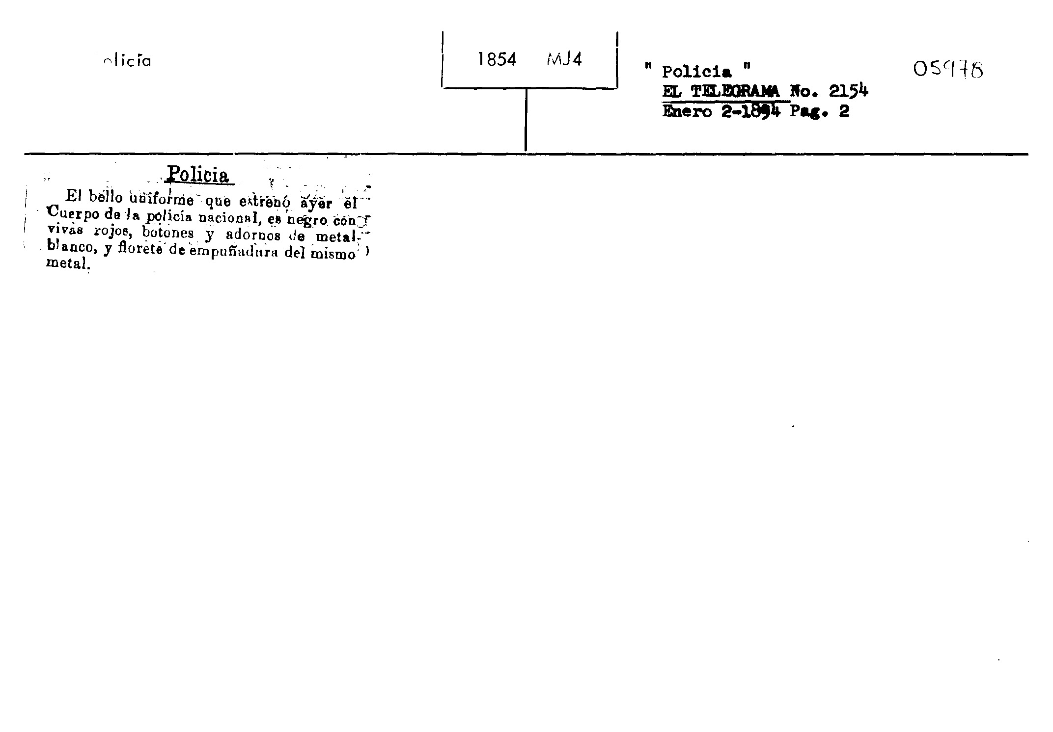 "Policía" EL TELEGRAMA No. 2154 Enero 2-1894 pág. 2