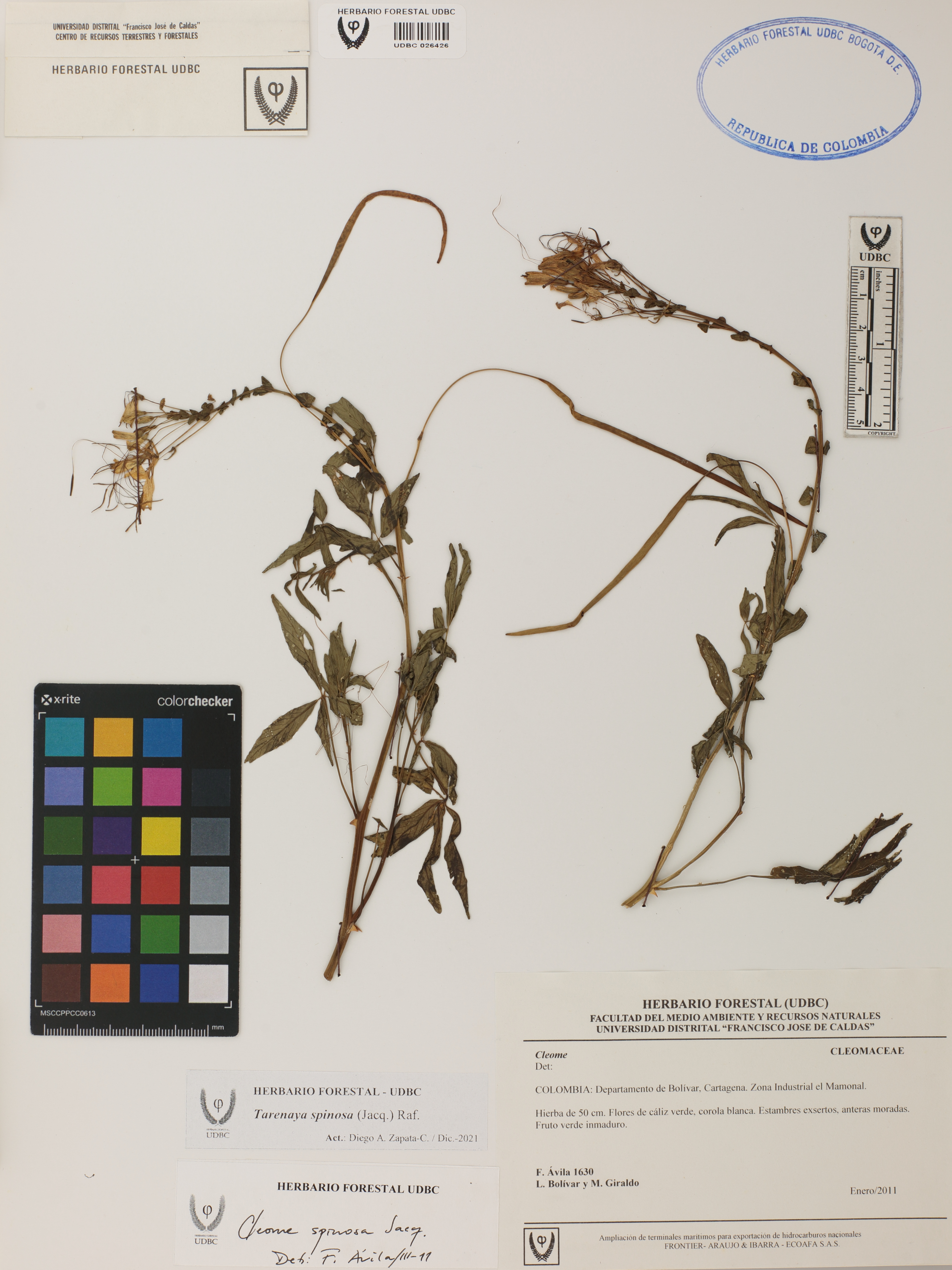 Fotografía del ejemplar Ávila, F. 1630, determinado como Tarenaya spinosa en el año 2011