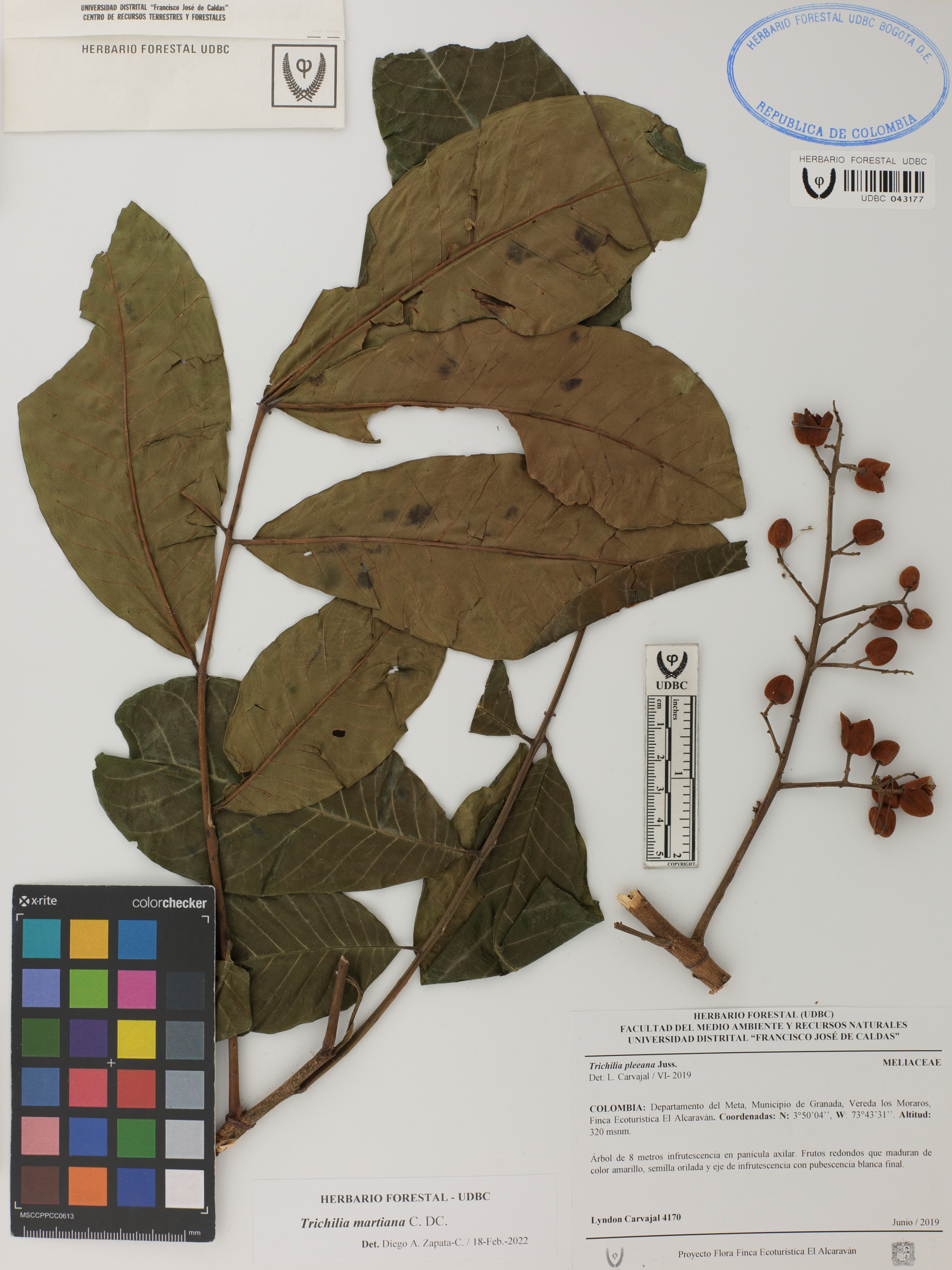 Fotografía del ejemplar Carvajal, L. 4170, determinado como Trichilia martiana en el año 2022